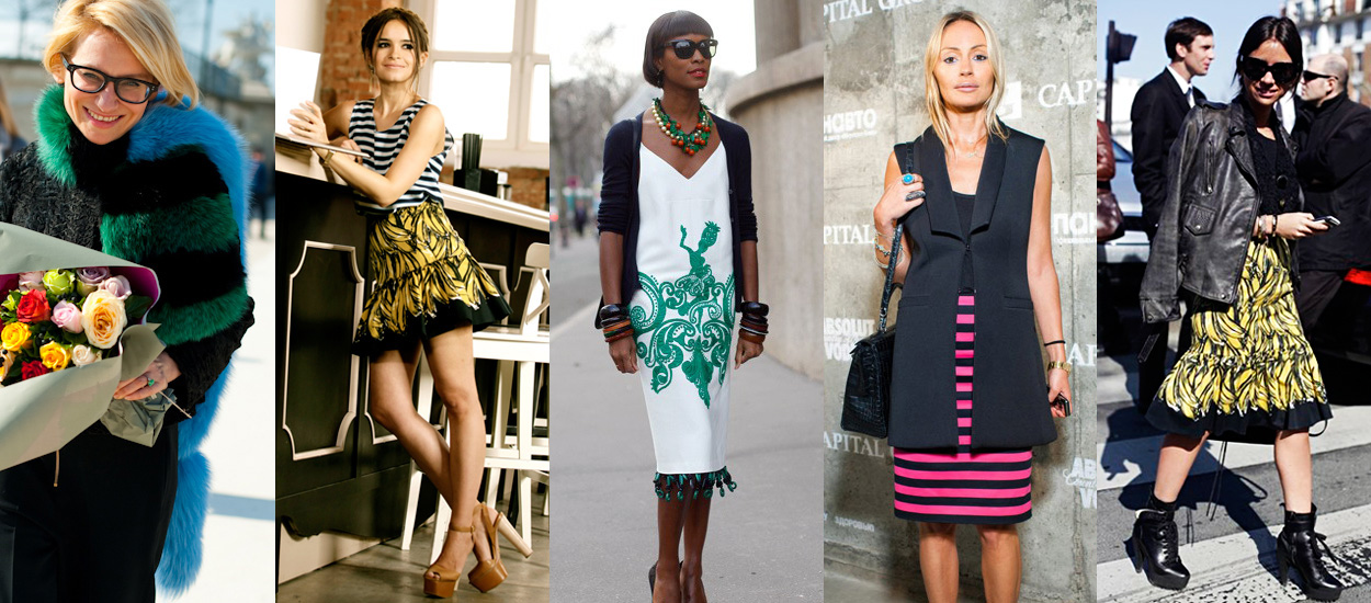 Но как только температурные показатели стойко вошли в весенний режим, девушки тут же забыли про меховые шарфы, и настал звездный час "бананового" принта!
