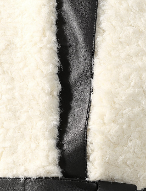 Образ, в котором дубленка выходит на первый план и становится главным акцентом. Черный цвет компенсируется множеством фактур: деним, состаренный трикотаж, нейлон и гладкая кожа.