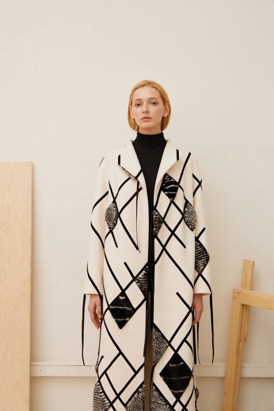 Черно-белая гамма — один из главных трендов сезона наряду с геометрией и принтами, которые напоминают произведения современного искусства. Самая примечательная, а вместе с тем и универсальная характеристика всех вышеперечисленных тенденций — в том, что они гармонично сочетаются и дополняют друг друга. Мы как раз нашли именно такую вещь, в которой цветовая гамма и принт совпали с трендами этой весны, — пальто от российского модного дома Izeta. Белое пальто украшено черными линиями, складывающимися в геометричные узоры с акцентами в виде меховых деталей. Лучше всего оно будет сочетаться с черной водолазкой или трикотажным платьем, тяжелыми ботинками или «уродливыми» кроссовками.
