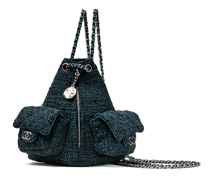 Когда известные и любимые модниками марки создают для своих поклонников не только потрясающе красивые, но и крайне практичные вещи — это всегда повод для восхищения. Одним из таких объектов желания стал рюкзак Chanel, выполненный из знакового для модного дома твида темно-изумрудного цвета и оснащенный элегантными цепочками вместо ремешков. Накладные карманы его напоминают классические сумки Chanel в миниатюрном варианте — словом, все традиции модного дома соблюдены.