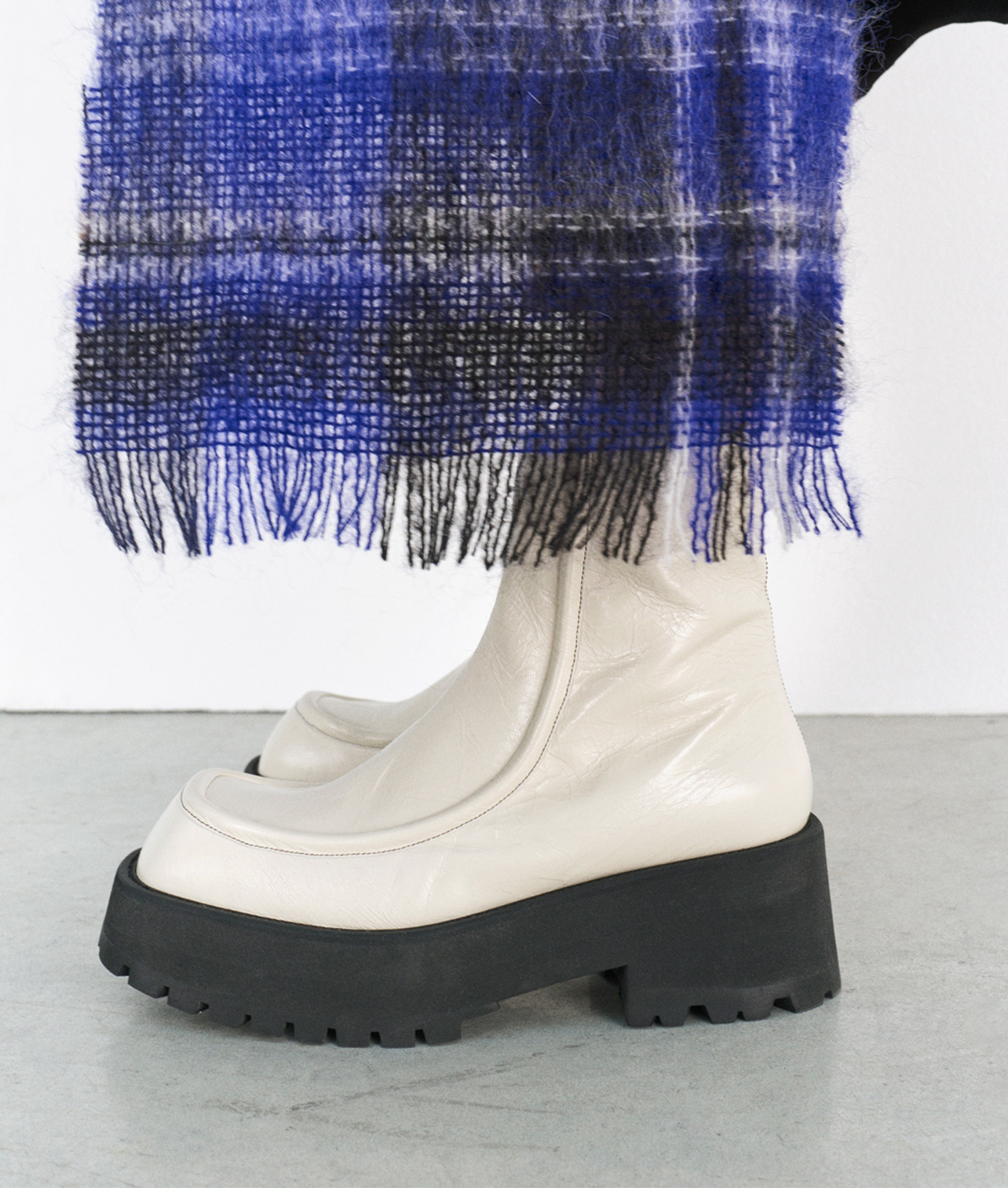 В свежих коллекциях много армейских ботинок — и мы не скрываем своей радости: все-таки грубая обувь идеальна чтобы месить снегогрязь с октября по апрель. Выбирайте между мотоциклетными Bottega Veneta, высокими Prada c микросумками на щиколотках, классикой Dr. Martens и носите их с противоположными по эстетике вещами: подойдут летящие платья, белоснежные джинсы и плиссированные миди-юбки.