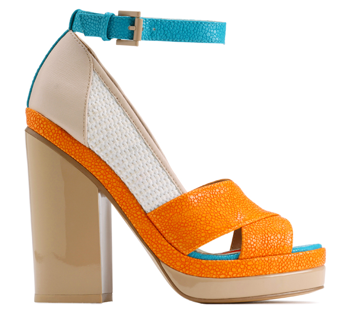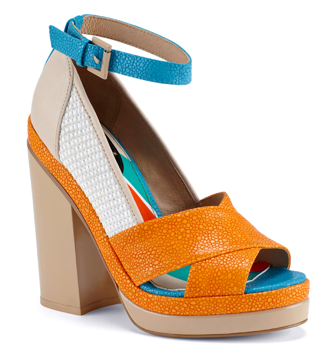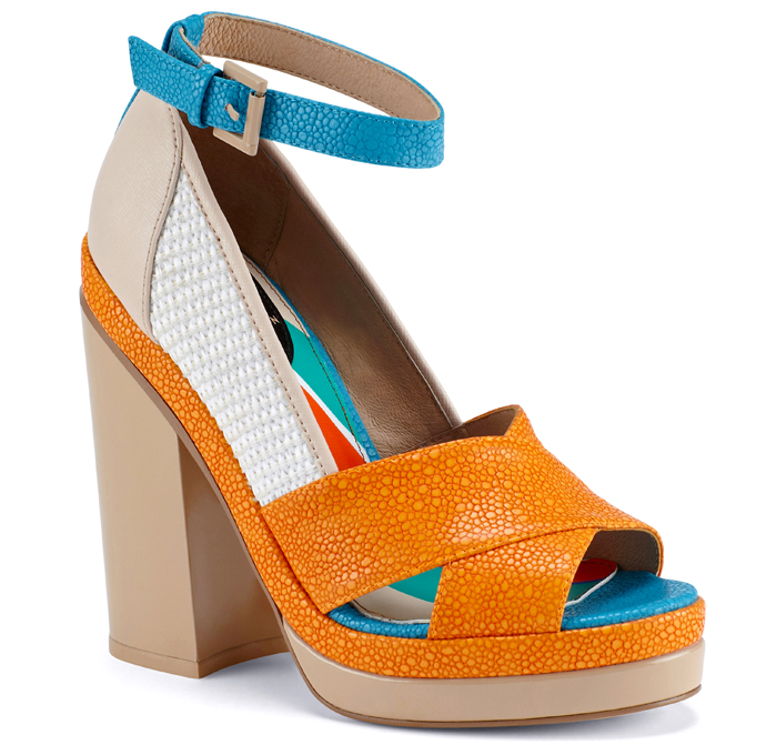 Плисcированная юбка в полоску, топ с изображением пуделя, шейный платок с цветочным принтом и яркая обувь — вот ключевой образ из коллекции Ostwald Helgason весна-лето 2014, которая, по словам дизайнеров, была посвящена "всем самым красивым и веселым вещам в жизни". Ну а что, бежево-оранжево-голубые босоножки на высоком устойчивом каблуке и платформе, сделанные для Ostwald Helgason канадской обувной маркой Aldo, вполне подпадают под эту категорию.