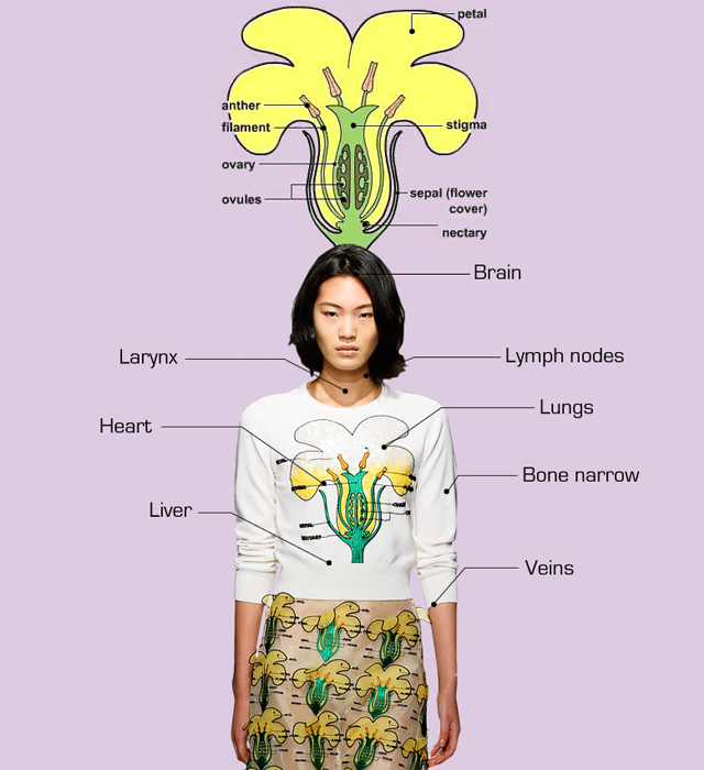 Без цветочного рисунка не обходится ни один весенне-летний сезон, но грядущий покажет цветы по-новому — научно. Случится это благодаря британскому дизайнеру Кристоферу Кейну, который прямо на одежде "раскладывал" цветы на части и объяснял их строение, как на страницах энциклопедии по ботанике. А также рассеивал их по всей своей коллекции: семена в виде овальных прорезей на платьях и свитшотах, мелкие бутоны на полупрозрачных тканях, пыльцу — в форме разноцветного пуха — на объемных кофтах.