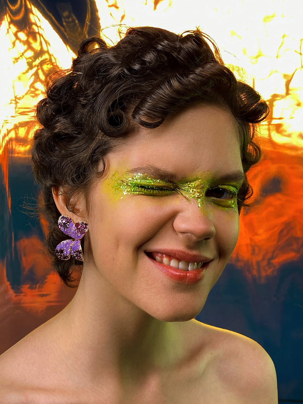 Блестки и неон — главные тенденции в макияже на последних показах. Чтобы скрасить серые будни и быстро поднять себе настроение, выбираем смелые сочетания и дополняем яркие цвета в одежде не менее яркими макияжем и укладкой. Стрелки, смоки и румяна с глиттером, кудри разного объема, яркие принты и необычный крой в одежде — все это в съемке ЦУМа, снятой фотографом Данилом Головкиным на iPhone 11 Pro и приуроченной к старту продаж гаджета в Apple Shop на первом этаже ЦУМа.