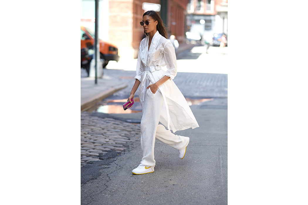 Если зимой в любой непонятной ситуации советуют надевать все черное, то летом ровно наоборот — все белое. Да, в цветовом спектре этого сезона правят неоновые оттенки, но в них постоянно ходить не будешь — глаза устанут и у вас, и у окружающих. Белый в этом смысле в тысячу раз универсальнее — эффекта производит не меньше, а надоедает медленнее. Особенно так называемый total white. Человек в белом с ног до головы всегда выглядит статно, даже если на нем мятые льняные брюки и рубашка. В стритстайл-хрониках полно примеров.
