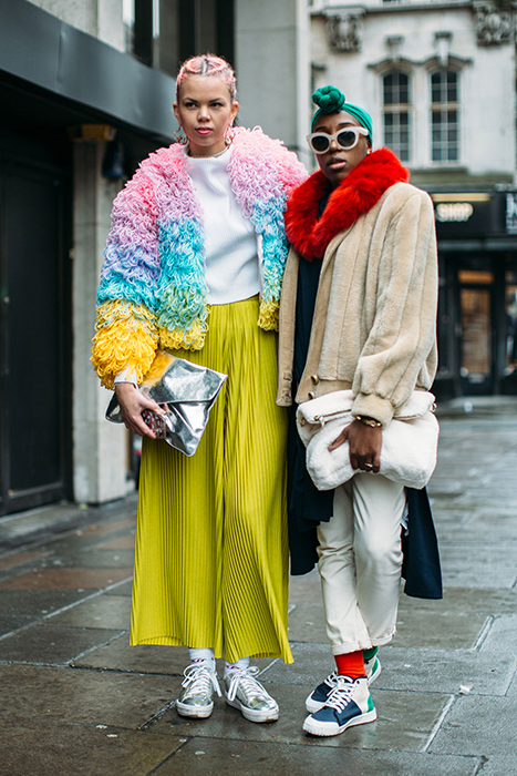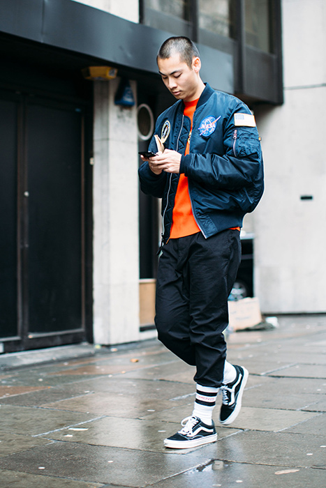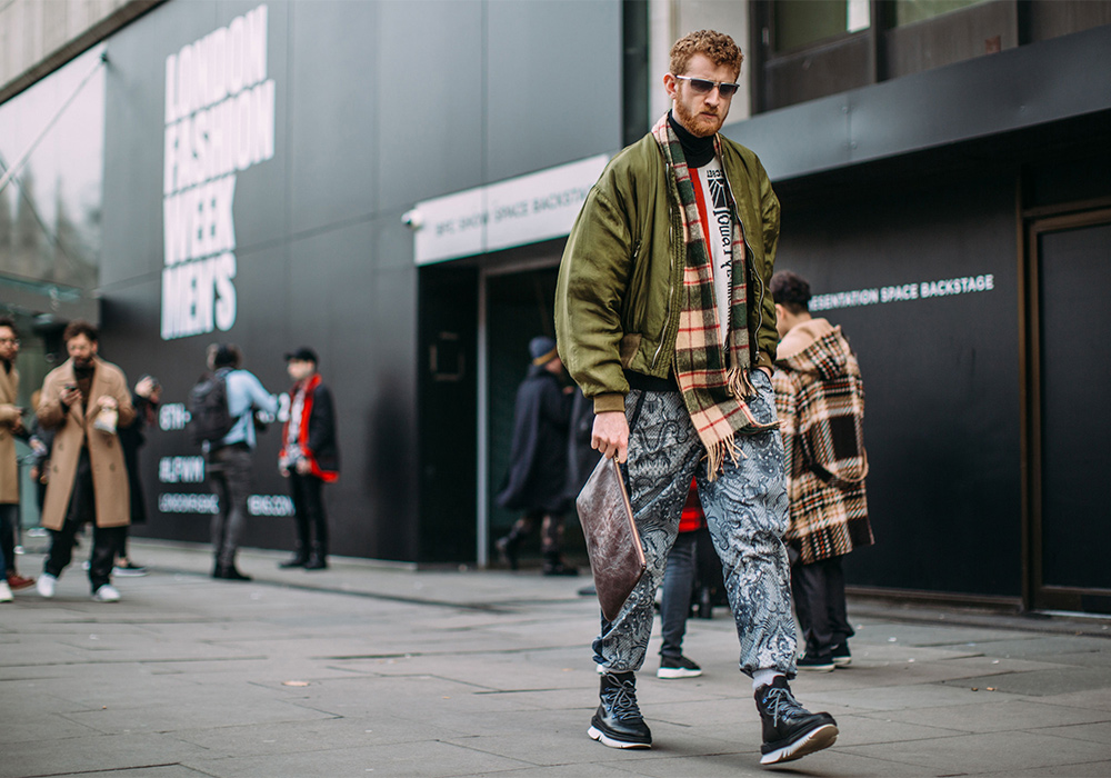 С 6-го по 9 января в Лондоне проходит мужская Неделя моды сезона осень-зима 17/18, на которую съезжаются байеры, журналисты, блогеры и модники со всего мира. Мы выбрали самые яркие образы первых двух дней показов, и, похоже, наши прогнозы главных тенденций на 2017 год подтверждаются: на улицах Лондона замечены яркие бомберы и пуховики, силуэты оверсайз, вещи с вышивками и крупной абстрактной графикой, а также массивные украшения и аксессуары.