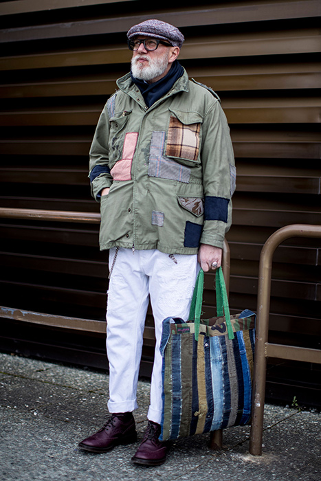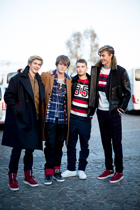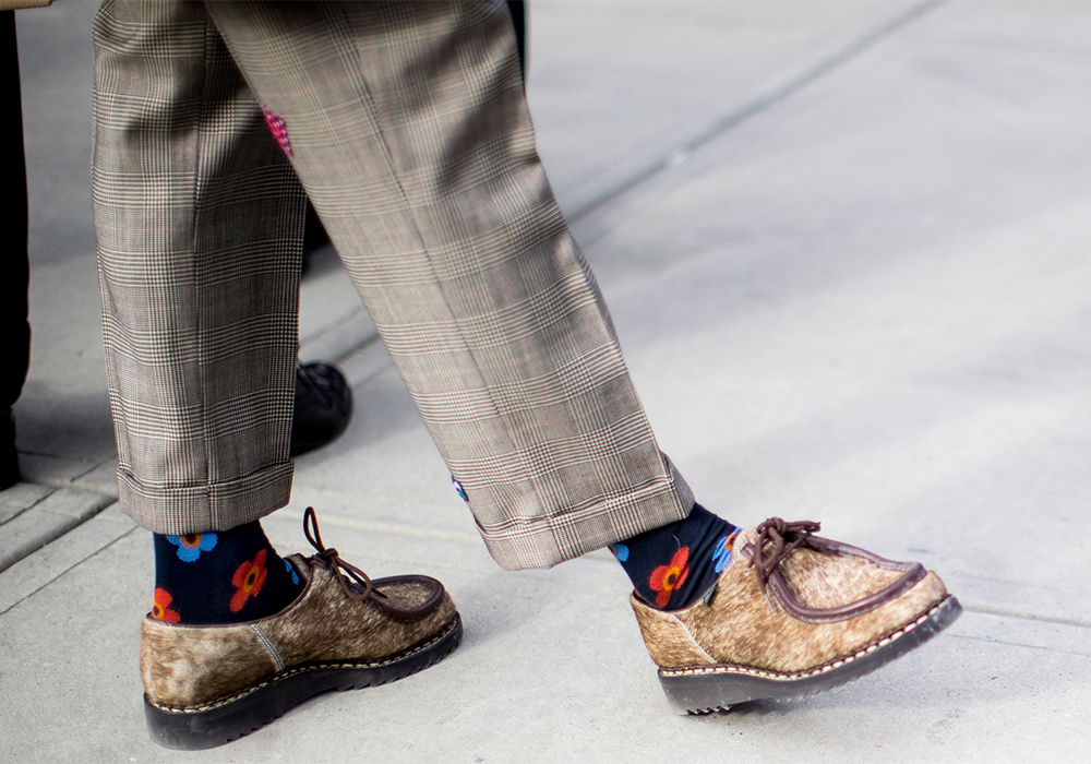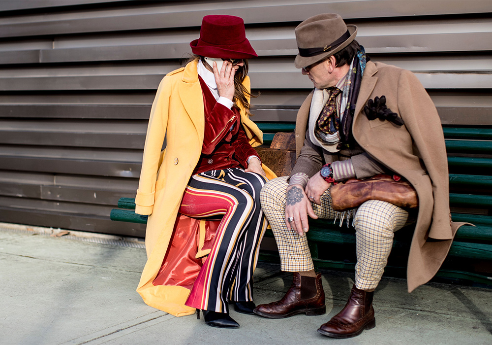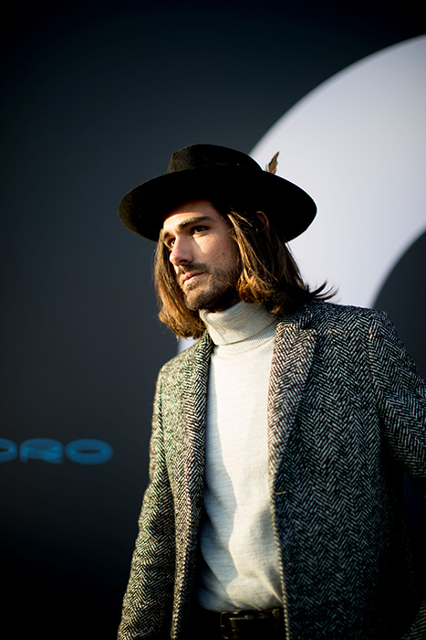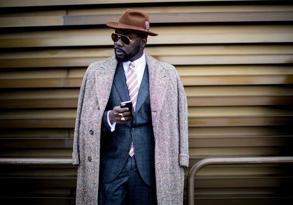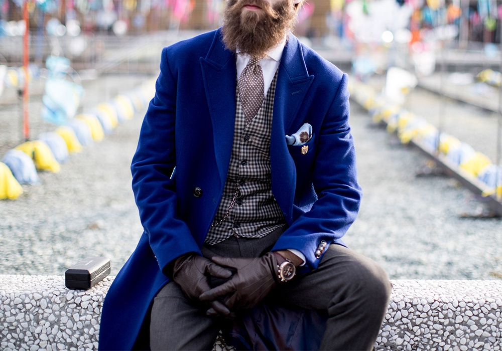 В первом выпуске стритстайла главной недели мужской моды — костюмы-тройки, классические кашемировые пальто, фетровые шляпы и кепки всех форм и мастей, яркие галстуки, бабочки и платки в нагрудных карманах пиджаков, броги с эксцентричными цветными и узорчатыми носками, а также массовое помешательство на замшевой обуви и, что неудивительно, стайлинге бород — в общем, денди во всей красе.