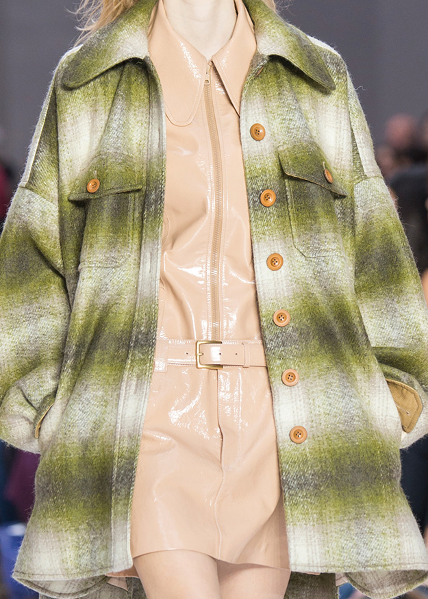 Как и многие в этом сезоне, Келлер вдохновилась 60-ми, 70-ми и 90-ми: основными элементами новой коллекции стали длина мини, ткань в клетку, прямые фасоны, туфли с круглым носом и ремешками, жабо и белые воротнички, как у Розмари в фильме Романа Полански 1968-го года. Образ пай-девочки дизайнер разбавила черной подводкой, а прямой крой родом и психоделические принты соединила с шерстяными оверсайз-кардиганами в духе Лоры и Донны из «Твин Пикс».