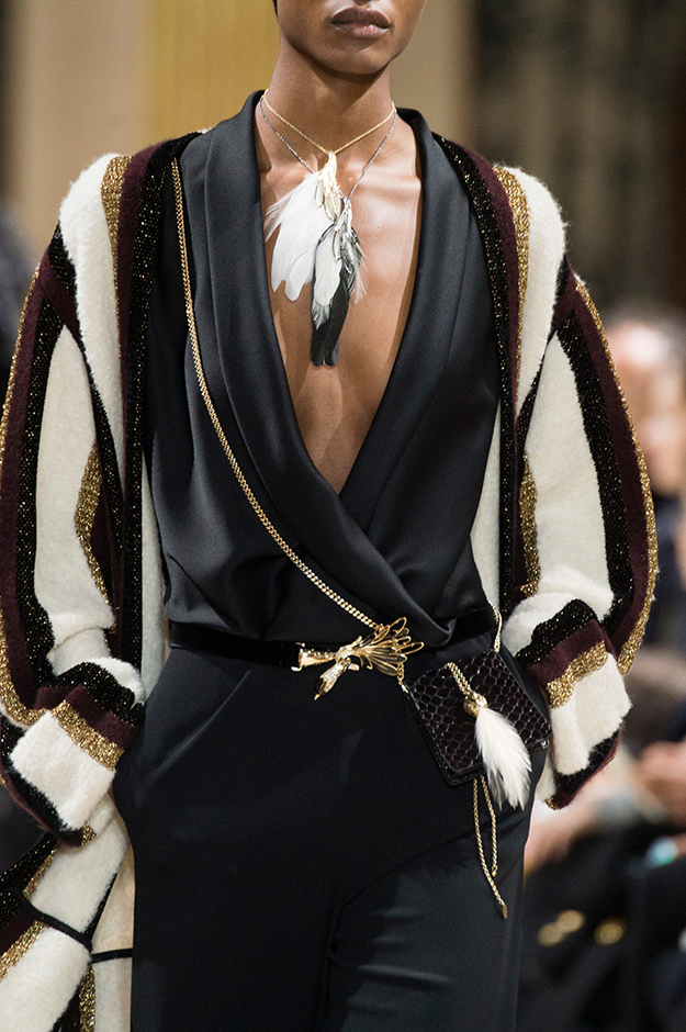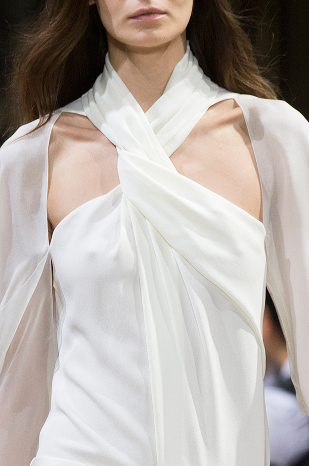 Как и дебютный показ Бушры Жаррар для Lanvin, осенне-зимнее шоу вполне вписывается в рамки эстетики бренда: новый креативный директор вслед за Альбером Эльбазом работает на стыке классики, минимализма и роскоши, разбавляя в меру консервативные образы драпировками, глубокими вырезами или яркой фурнитурой.