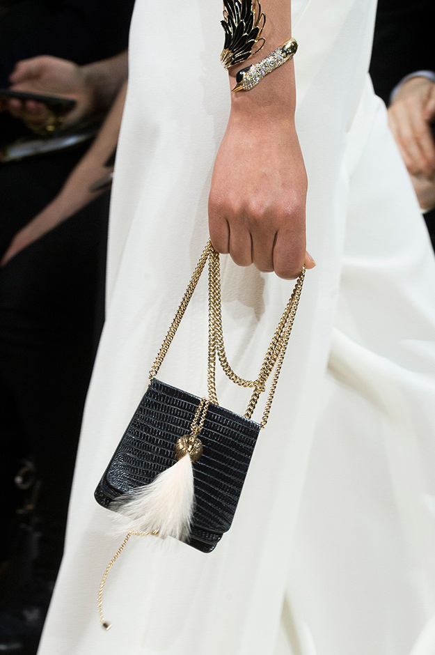 Аксессуары: маленькие сумочки на цепочках, ожерелья-чокеры, броши и ремни с пряжками, сумки-портфели