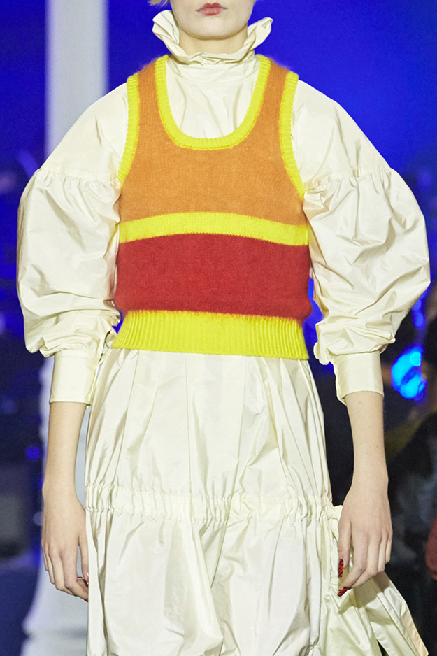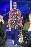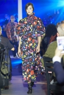Однако это ни в коем случае не ретроколлекция. Узнаваемый цветочный принт Kenzo украшает современную одежду: стеганые бомберы, пальто и юбки, пуховики, костюмы и платья. Сам формат шоу, среди гостей которого был и сам Кензо Такада — основатель бренда, был необычным: в начале гостей показа ждал ужин, а в конце — выступление певицы Lauryn Hill.