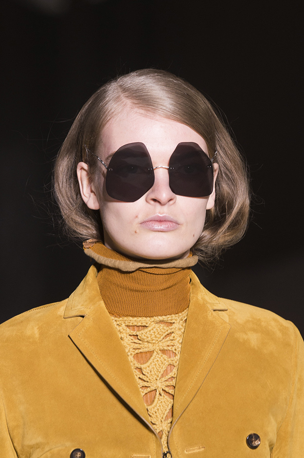 Аксессуары: массивные серьги, асимметричные цветные очки, сумки-мешки с широкими ремнями, шерстяные полосатые гольфы