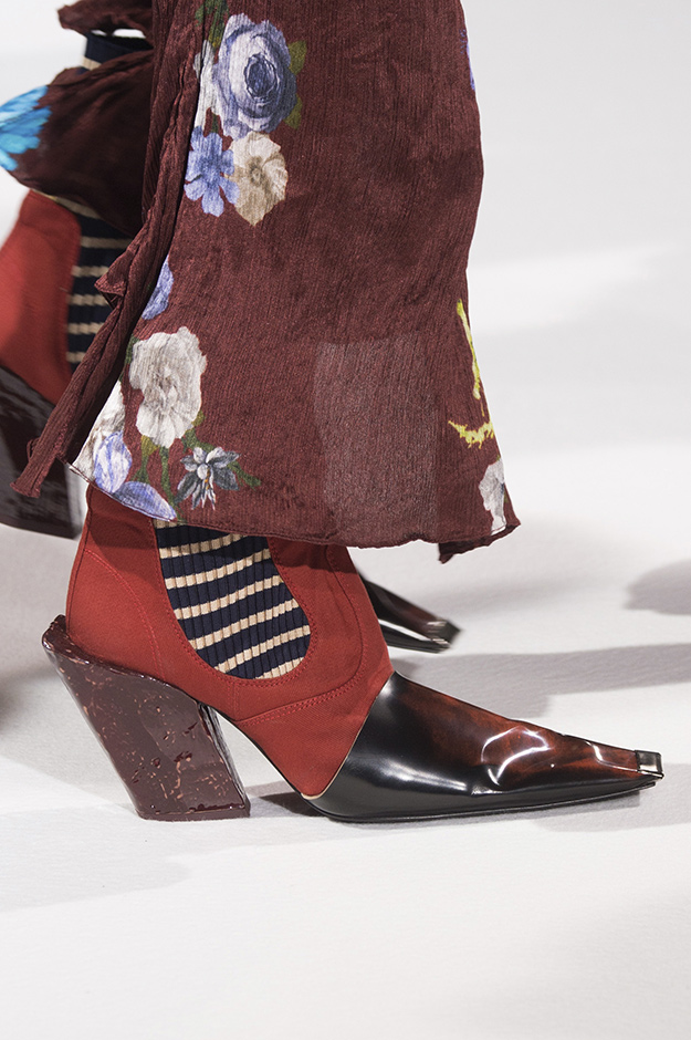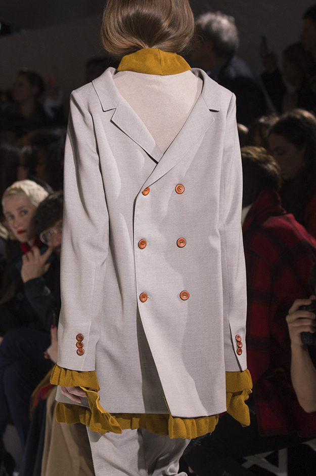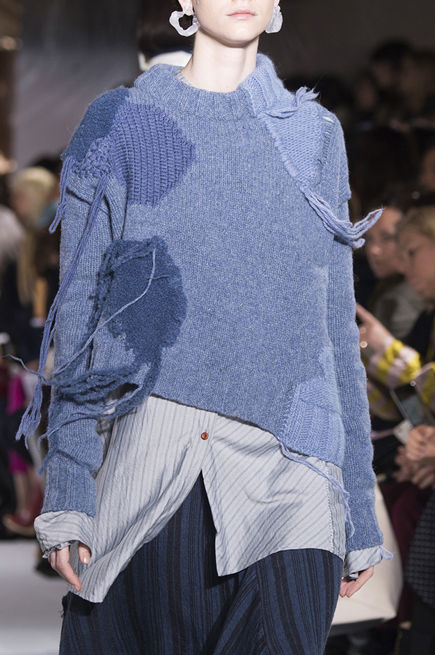 «Я точно знаю, чего я не хочу: я не хочу уходить в городскую тематику или streetwear», — в новом сезоне Джонни Йоханссон остался верен себе, не обращая внимания на хайп вокруг уличной эстетики. Основой его новой коллекции стали асимметрия, колор-блокинг, лоскутное шитье, выпущенные нитки в духе последних шоу Джона Гальяно и фасоны 70-х, выполненные в землистых тонах — бежевом, кирпичном, небесном и сером.