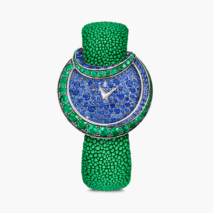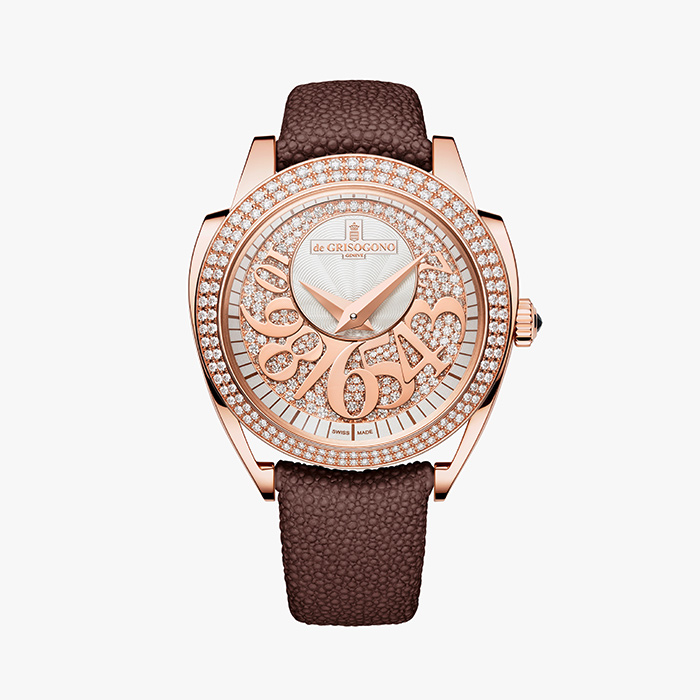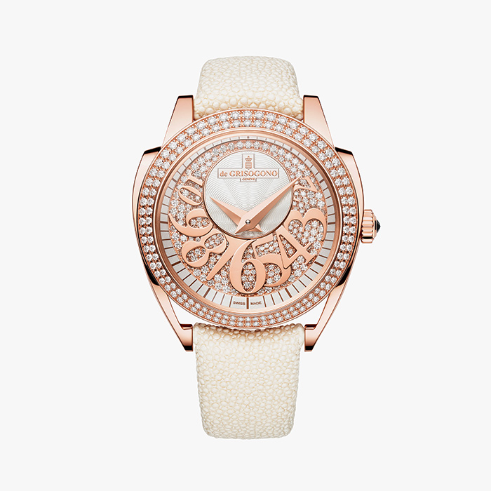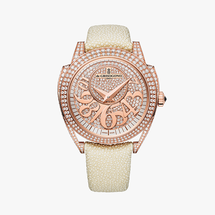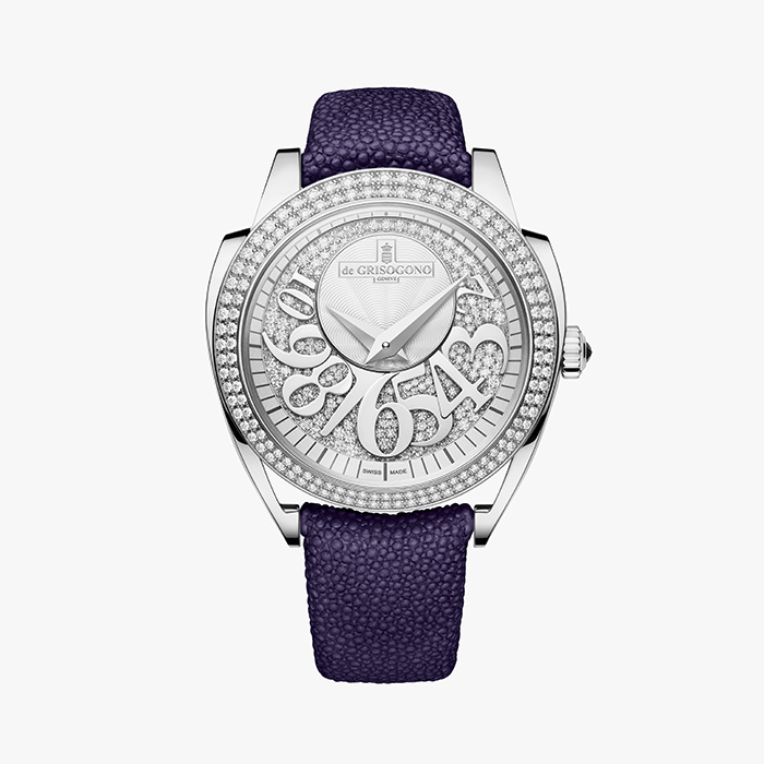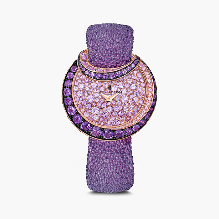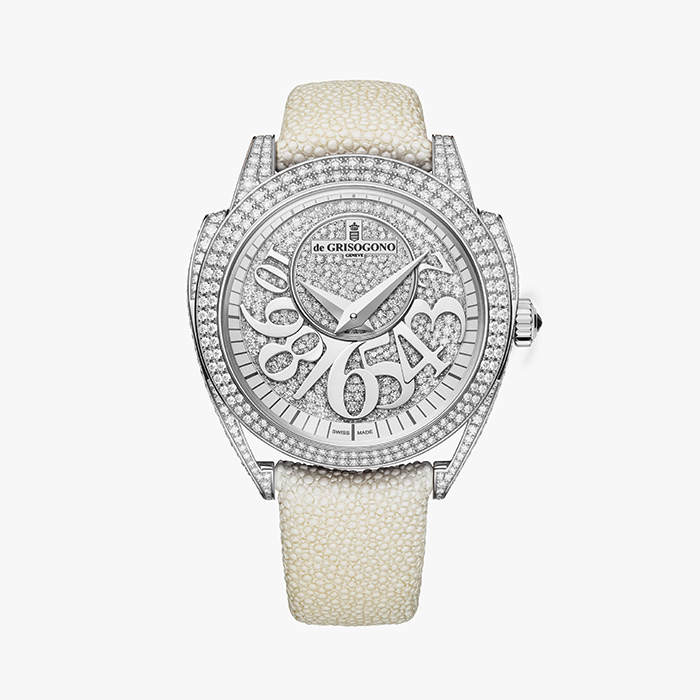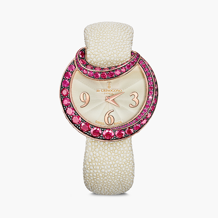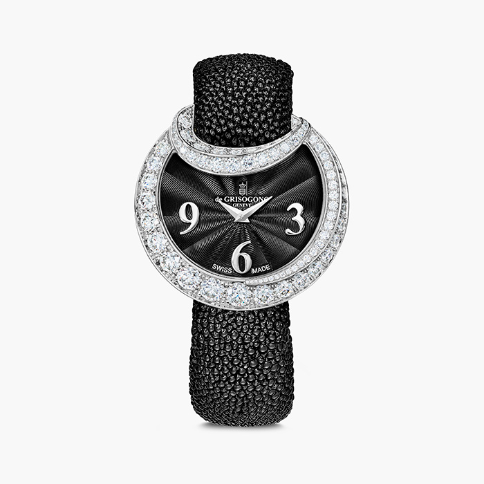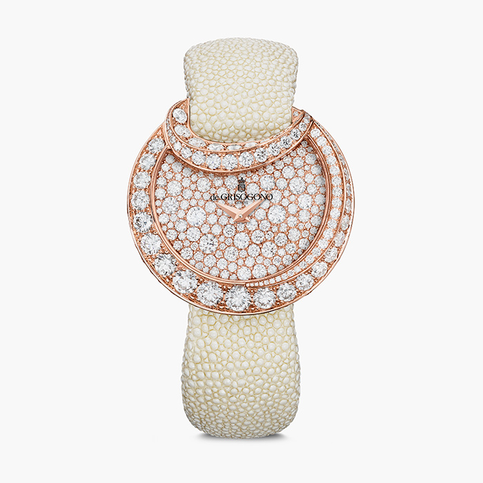 Шейцарская марка de Grisogono представила новую серию ювелирных часов Luna. Асимметричная модель с драгоценными камнями доступна в версиях из белого или розового золота.