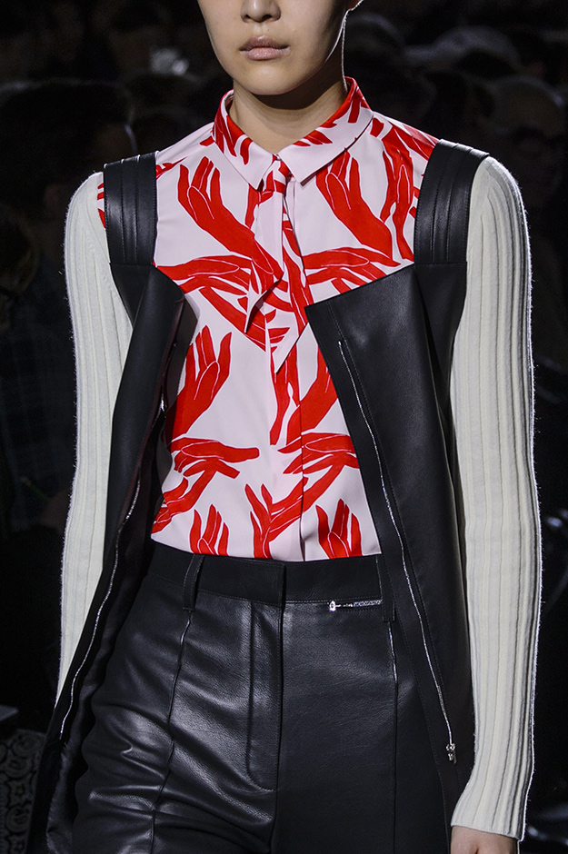 Отдавая дань своему предшественнику Кристоферу Ламеру, Надеж-Ване Цыбульски сделала лаконичный крой, чистые цвета и натуральные ткани (хлопок, шелк и кожу) базой многих образов из новой коллекции. Однако и в этих заданных рамках дизайнер показала себя: минималистичные прямые фасоны усложнены за счет дополнительного объема и многослойности. Некоторые модели говорили лишь языком Цыбульски: образы были сконструированы на основе смешения фактур, монохромности, принтов и различных деталей — иногда даже таких ярких, как разноцветный мех.