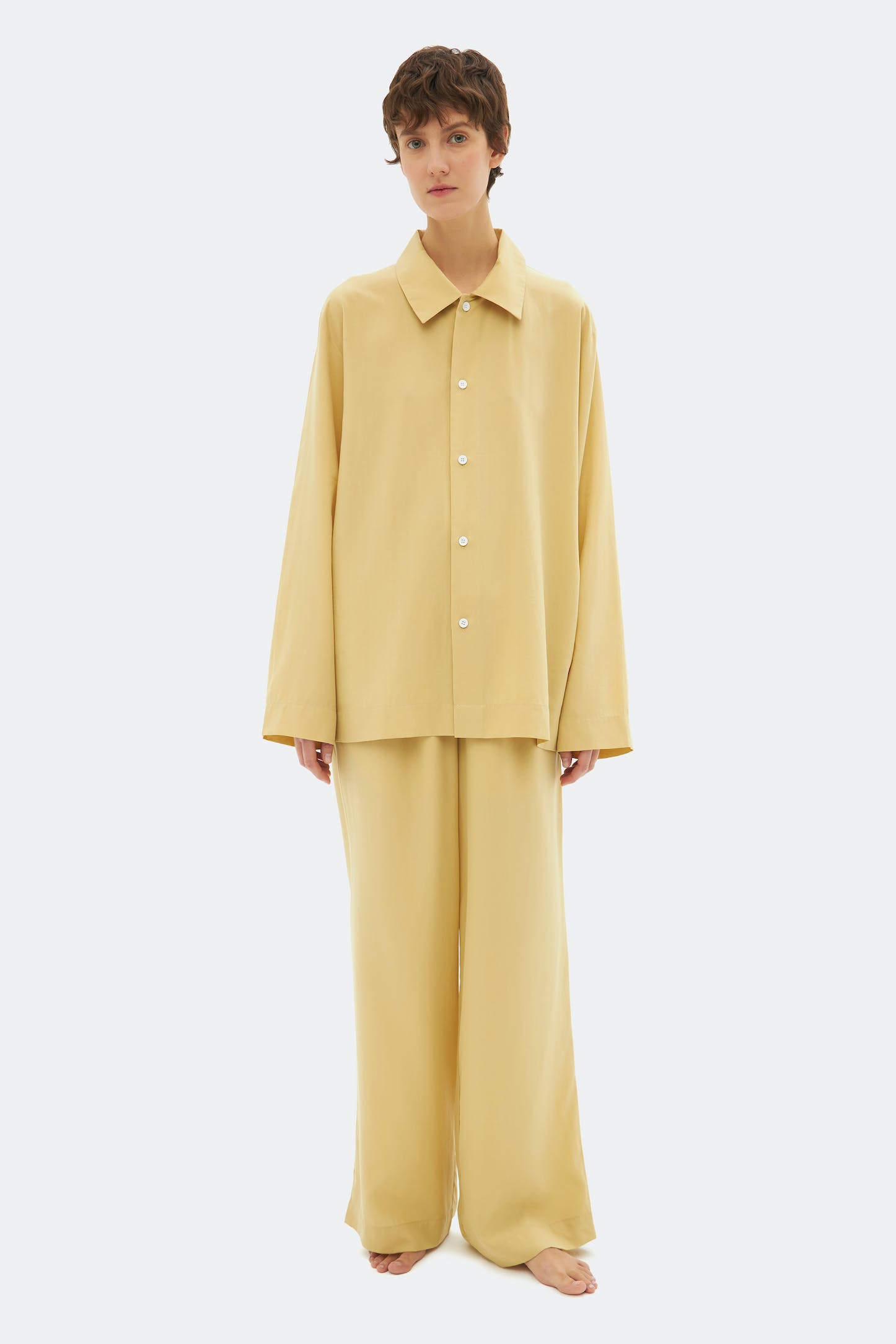 Шведы Tekla? Нет, российский бренд Shu, про куртки которых вы наверняка наслышаны. Недавно марка запустила домашнюю линейку с полотенцами, пледами, постельным бельем и пижамами. Комплект в красивом оттенке сливочного масла сразу отправляется в корзину — а там уже решим, себе или в подарок (пижамы Shu не делятся по гендеру).
