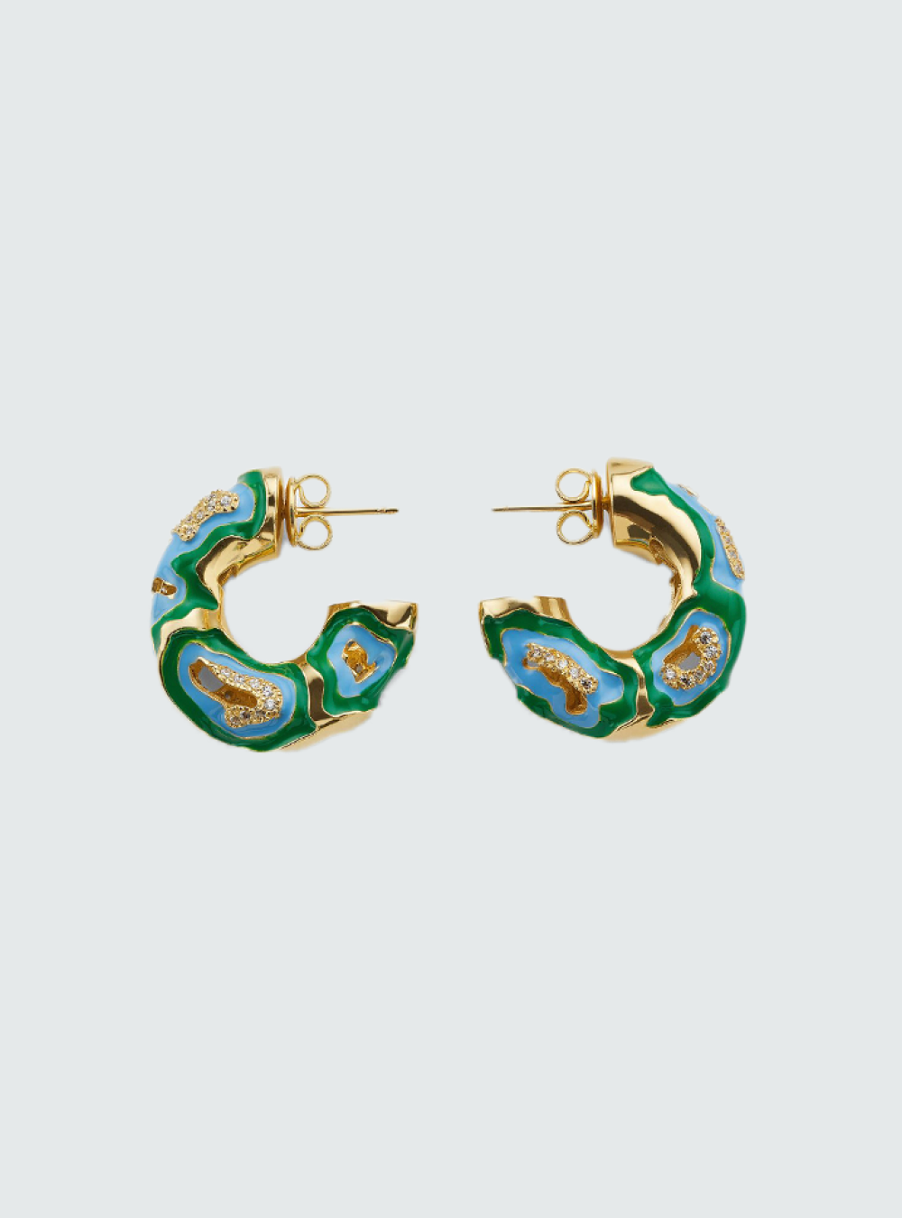 По своему опыту знаем, что яркие цвета могут способствовать бодрости духа. Можно по-прежнему носить тотал-блэк, но точечно добавлять акценты — с помощью подвески, резинки для волос или вот такими серьгами в оттенках неба и зелени.