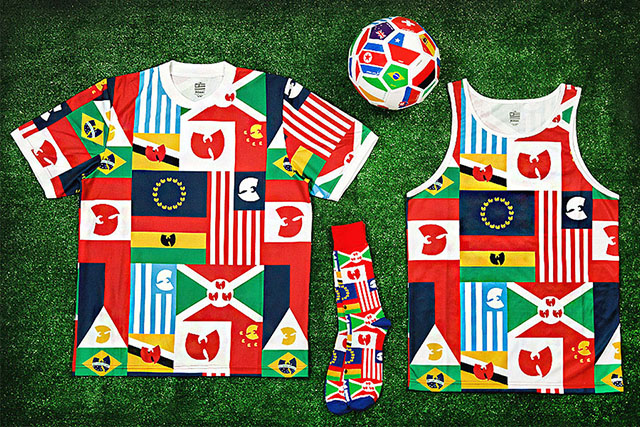 Команда Wu-Tang Clan обыграла тему флагов ярче, чем кто-либо из дизайнеров из этой подборки: на их кепках, футболках, панамах и даже носках флаги стран-участниц собрались вместе — вот он, прекрасный пример футбольной дружбы народов!