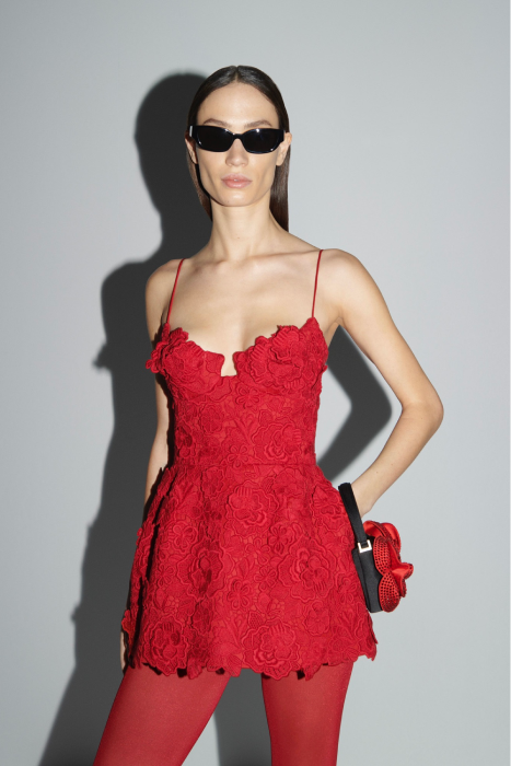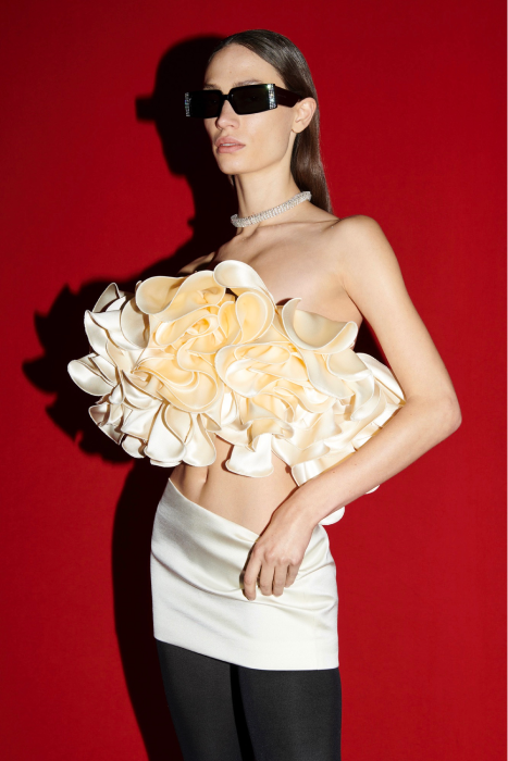 Как-то в парижском ресторане к тогда еще неизвестному польскому дизайнеру Магде Бутрим подошла Ким Кардашьян и спросила, что за юбка на ней надета. После этой беседы Магда сделала для Ким такую же юбку, и это стало стартом для нового бренда из Восточной Европы. Сегодня Magda Butrym представлен в сотне магазинов по всему миру, а вещи бренда легко идентифицируются: это мини и бра-топы с розочками, жакеты с широкими плечами и сандалии в кристаллах. Новая коллекция называется Love Letter, и в ней много красного цвета: лакированные плащи, кожаные и вязаные платья, корсетные топы и комбинезоны в заклепках. Эти чувственные вещи контрастируют со свободными брюками, объемными пальто и толстыми свитерами с высоким горлом.