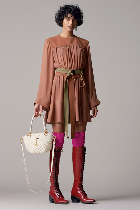 Наташа Рамсей-Леви, новый креативный директор Chloé, создавала осеннюю преколлекцию с идеей о гардеробе, который бы не выдавала принадлежность к какому-либо сезону. Если вдуматься, то в жизни мы не придерживаемся сезонов, как на подиуме, от этого новая коллекция вполне может быть уместна летом — например, струящиеся платья и легкие блузы, осенью, а может, даже и зимой — твидовые пальто, свитеры, теплое пончо и даже укороченная шуба.