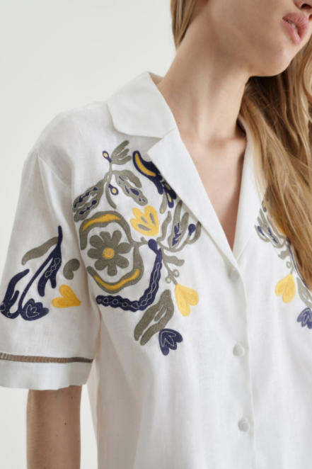 Нам нравится марокканский (да и любой отпускной) вайб этой коллекции Lime. Рубашку из стопроцентного льна с отложным воротником и вышивкой будем носить в комплекте с такими же брюками, джинсовыми бермудами и свободными шортами в синем или желтом. Колорблокинг приветствуется!
