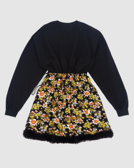 Заполучить платье авторства основательницы бренда MUR Ани Дружининой хочется по нескольким причинам. Во-первых, юбка изделия (впрочем, как и все, что делает дизайнер) сшита из винтажной ткани и представлена в единственном экземпляре. А во-вторых, в запрещенной сети появились фото самой Ани в этом самом платье — в компании со спортивными легинсами.