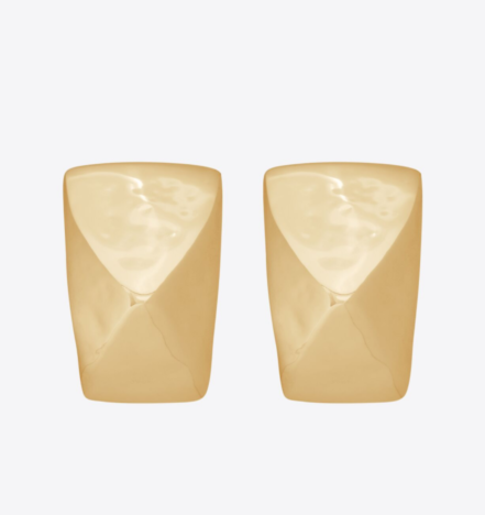 Эти серьги-пирамидки изготовлены не просто из 18-каратного желтого золота, а из переработанного драгметалла. Последний факт, безусловно, греет душу (как и гравировка SL на застежке), но и увеличивает шансы увидеть на сайте «sold out».