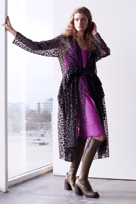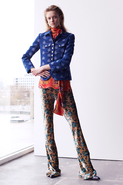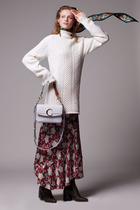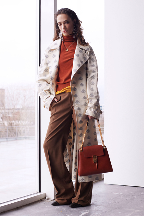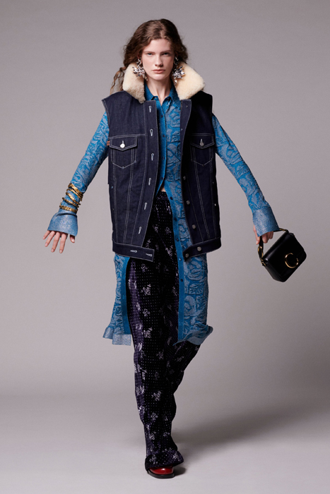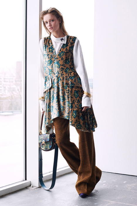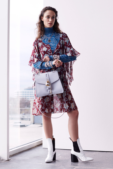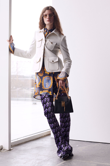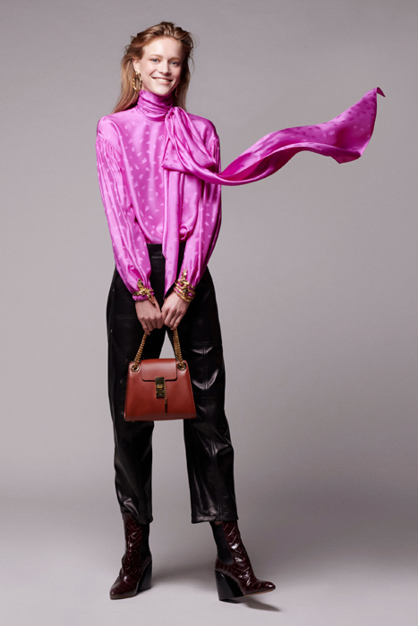 «Сегодня мода работает с ремиксами и трансформациями: новое получается из старого», — так дизайнер Наташа Рамсей-Леви комментирует новую коллекцию Chloé с принтами, как из 70-х, и силуэтами 80-х. Здесь есть вельвет, напоминающий о 90-х, викторианские воротники и фантазии на тему жокейской формы, которые отсылают к «Грозовому перевалу» Эмили Бронте. А самыми личными вещами в коллекции получились серьги и браслеты, на дизайн которых повлиял подарок сына Наташи— алюминиевое кольцо, которое он сделал сам.
