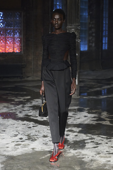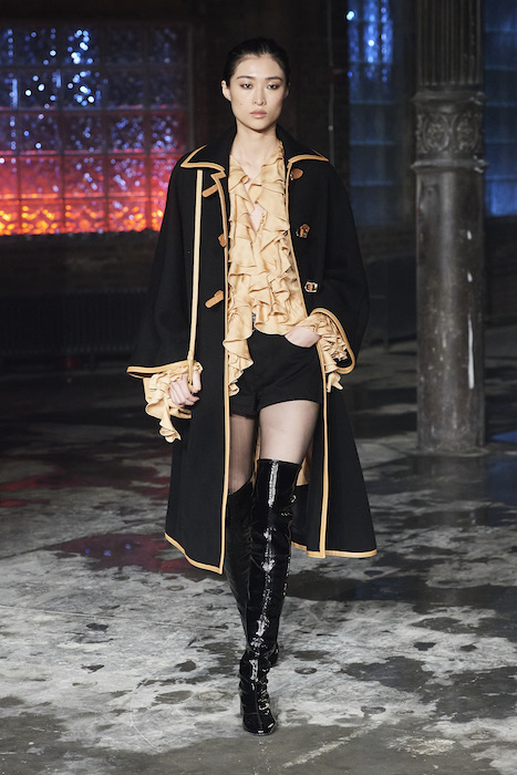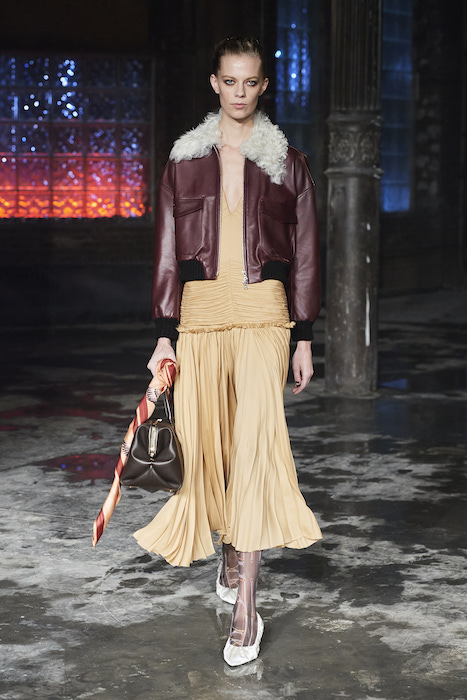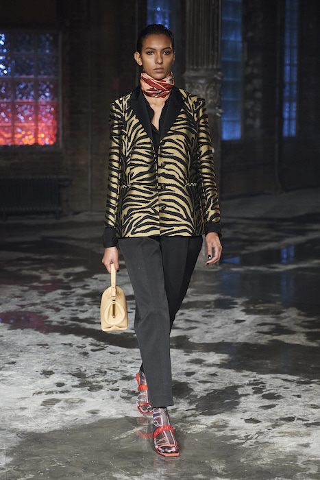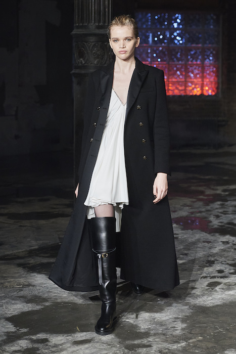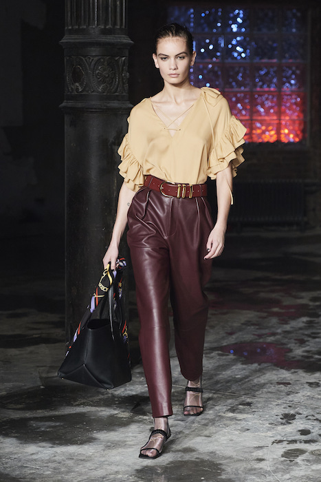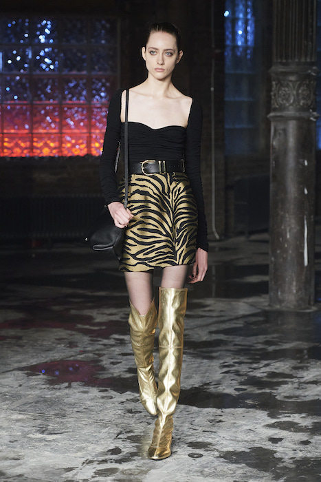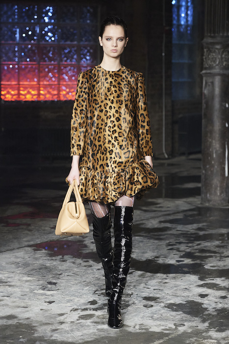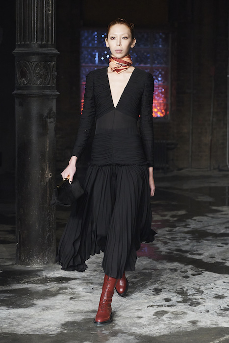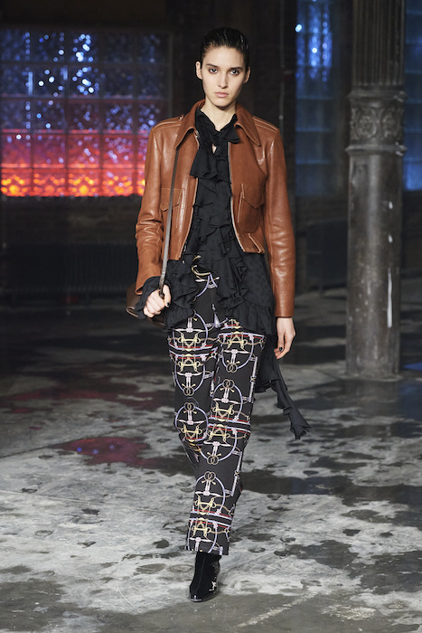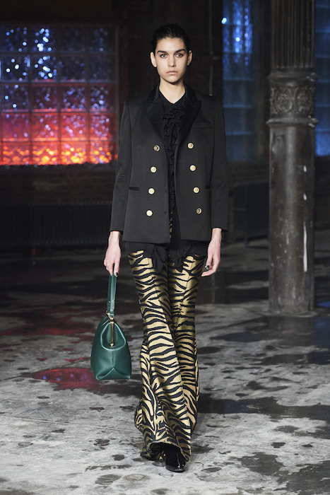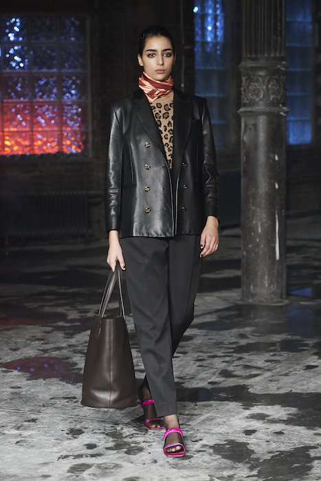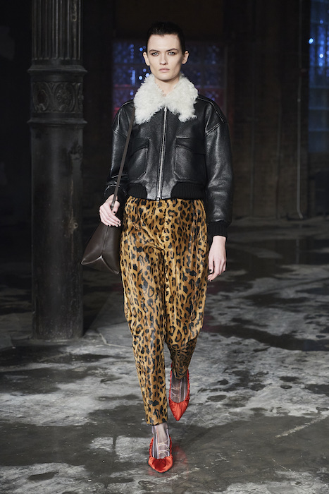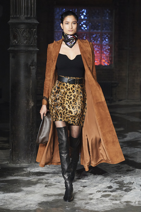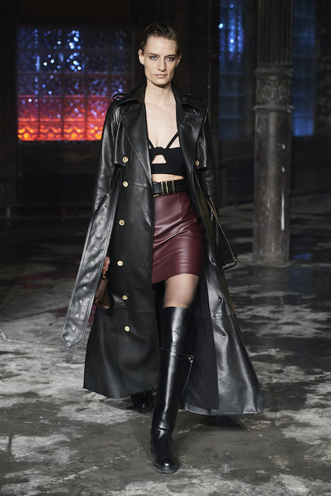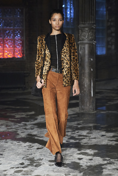 В новом сезоне бренд продолжает исследовать чувственную одежду, которая отвечает современным требованиям: выглядит сексуально, при этом комфортна, как тот кашемировый бра-диган. В осенне-зимней коллекции с этого ракурса рассмотрены шелковые блузки, леопардовые платья в оборках, романтичные кожаные пальто, трикотажные топы с акцентом на груди и ботфорты на плоском ходу.