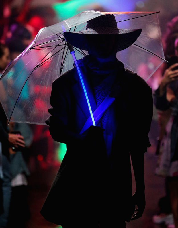 В тон общей темы Симонс придумал агендерную антиутопическую униформу для будущего, в которой уже не существует границ между Западом и Востоком, — нейлоновые плащи, объемные пальто, тейлоринг, шляпы в духе японских рыбаков, маски для лица и зонты. Затрагивая тему будущего, дизайнер тем не менее вспомнил и свое прошлое. В очередной раз он обратился к эстетике пост-панка и нью-вейва и задействовал в принтах графику Питера Савиля для альбомов New Order и Joy Division. Сам дизайнер прокомментировал это тем, что захотел обратиться к моментам, которые когда-то стали триггером для того, что он делает по сей день.