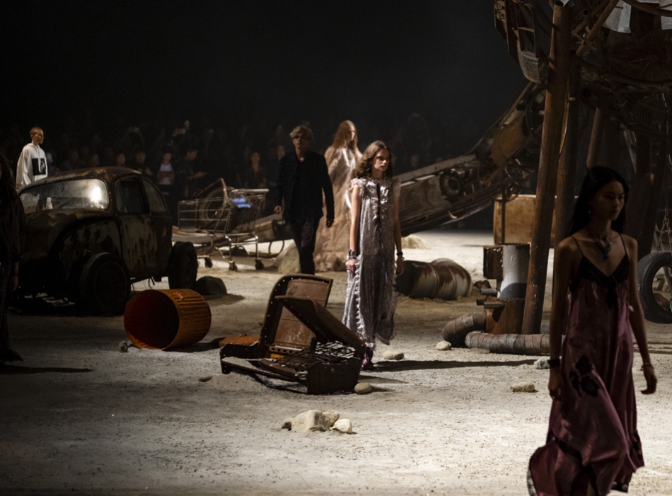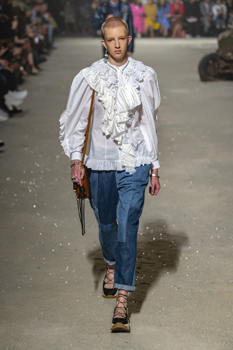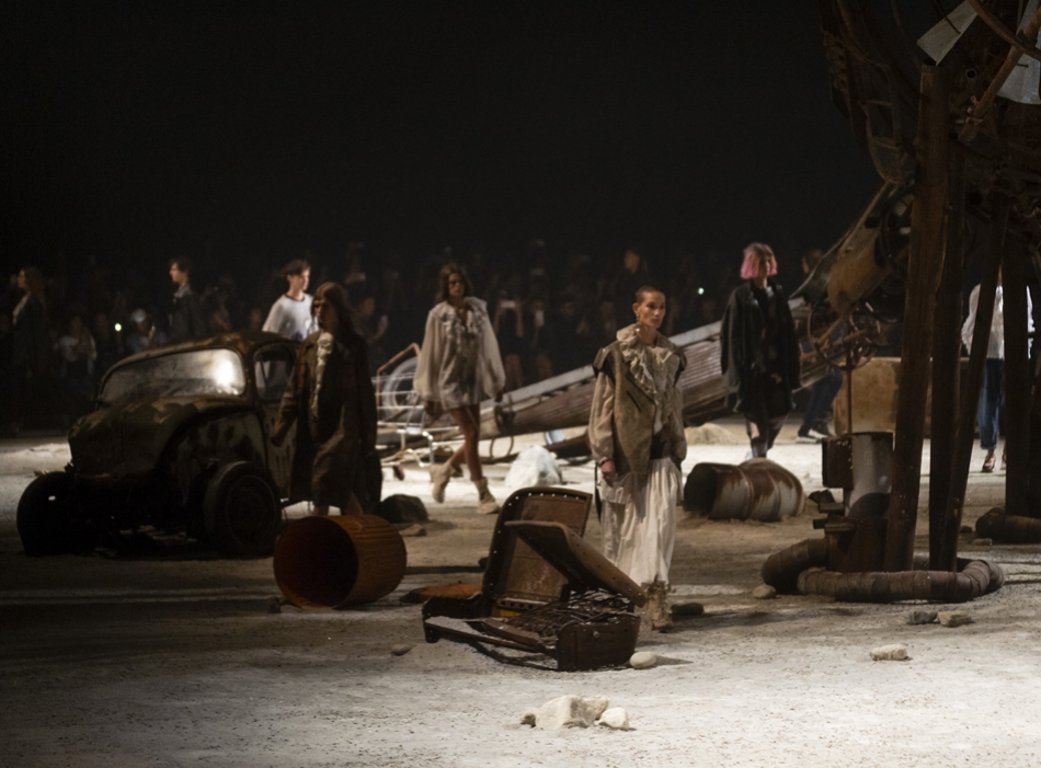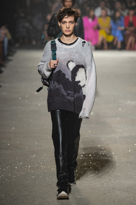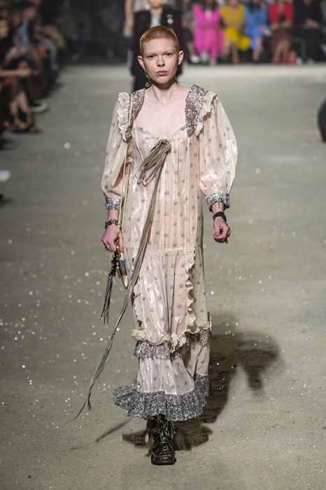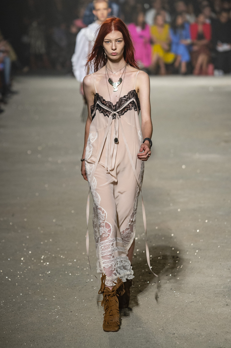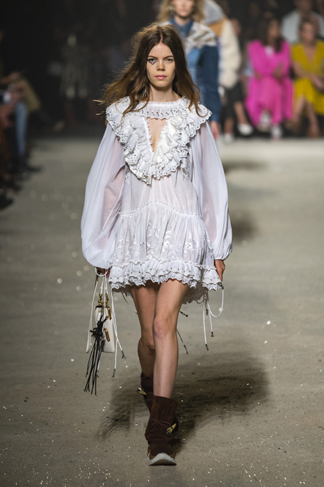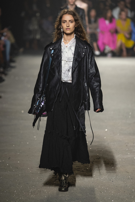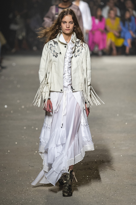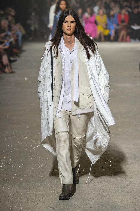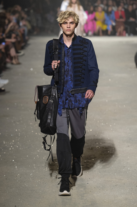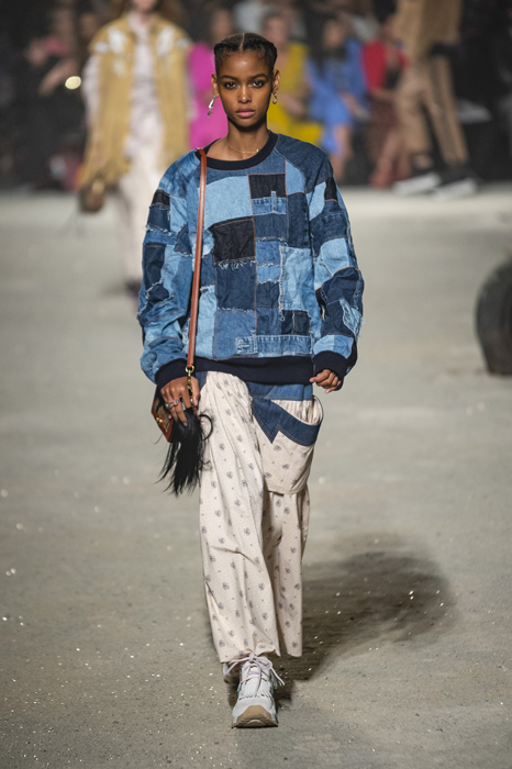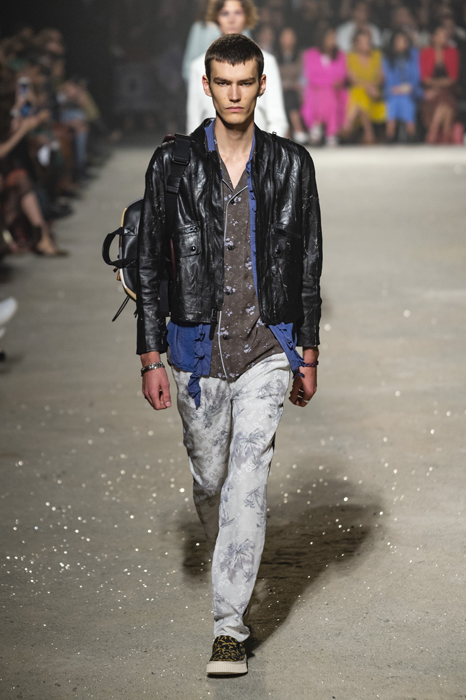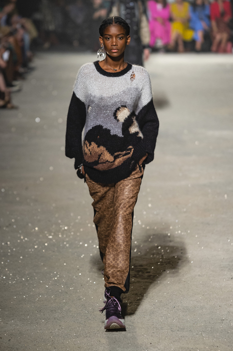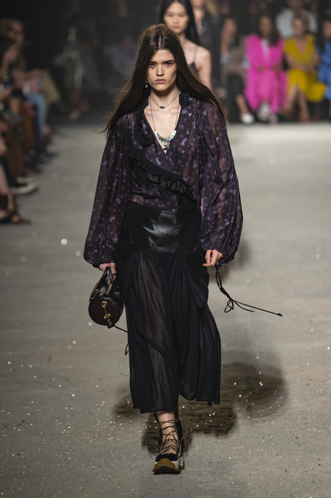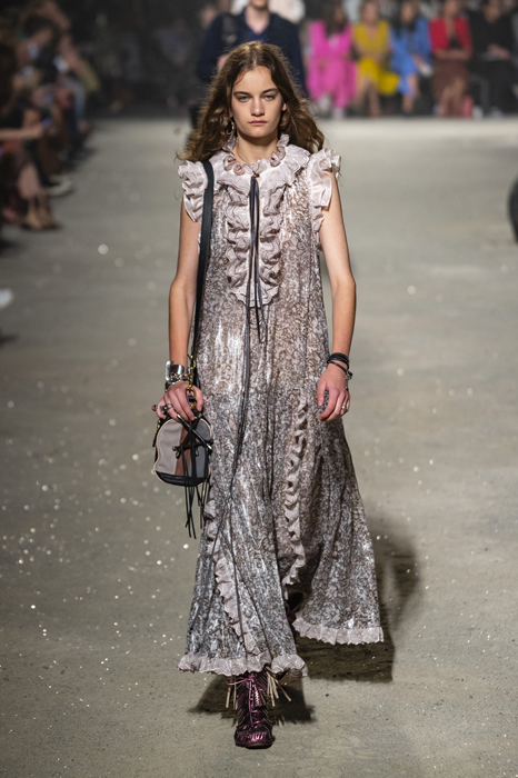 Ориентиром для весенне-летней коллекции Coach 1941 стал город Санта-Фе в штате Нью-Мексико: креативный директор бренда Стюарт Веверс пробыл в нем только 24 часа, но этого хватило, чтобы растащить атмосферу города на цитаты. Так получились пушистые жакеты, пародирующие флисовые куртки Patagonia, платья из переливающейся ткани в духе моды 1980-х и много кожаных вещей: сумки и рюкзаки с бахромой, жилеты и куртки, в которых легко представить себя героем автомобильного путешествия по Турквойсу или по крайней мере завсегдатаем бара The Matador в Санта-Фе.