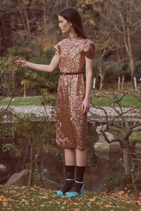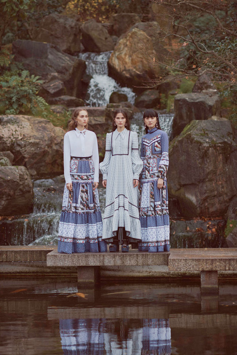 Европейские дизайнеры продолжают обращаться к японской культуре и искусству. Эрдем Моралиоглу не исключение. Новая межсезонная коллекция была создана под впечатлением от творчества Кацусики Хокусая, на выставке которого дизайнер побывал в Британском музее. Отсюда и локация съемки — японский сад. Параллельным источником вдохновения, по словам дизайнера, был британский бренд Laura Ashley. В коллекцию вошли нарядные женственные платья в флористичный принт — в лучших традициях бренда, а также костюмы и верхняя одежда — с той же цветочной темой, только раскрытой в вышивке.