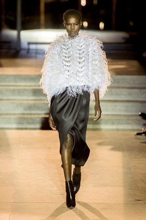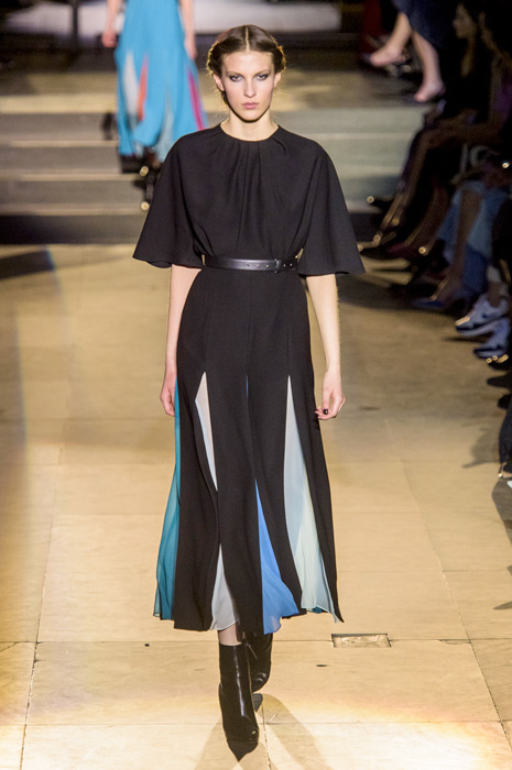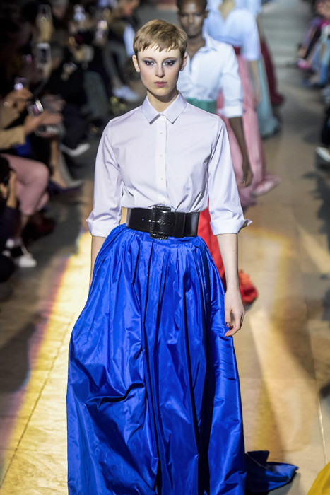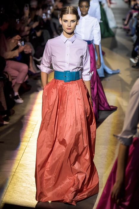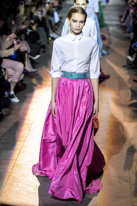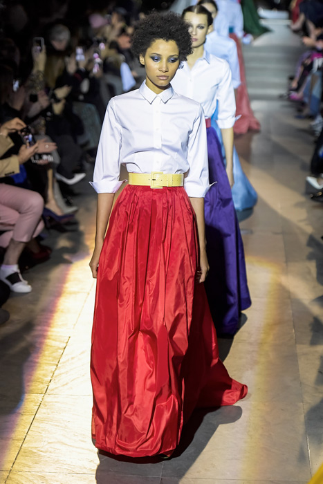 Ожидаемо коллекция сложилась из всех знаковых кодов модного дома, во главе которых — элегантный американский шик, по которому всегда можно узнать вещи бренда. Эррера представила атласные платья и юбки с запахом, покрытые тонкими перьями наряды, минималистичные струящиеся платья с цветными вставками и свободные белые рубашки с юбками в пол и широким поясом — то, в чем мы привыкли видеть ее саму.