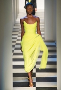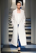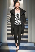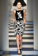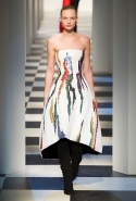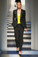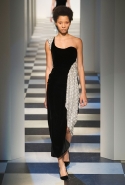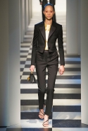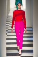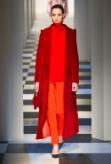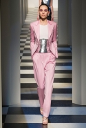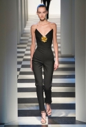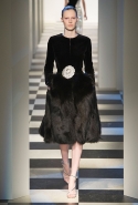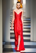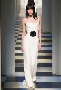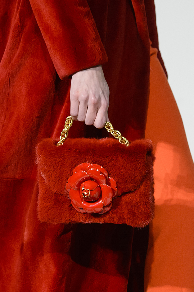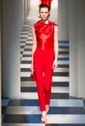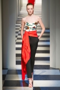 Коллекция во многом оказалось непривычной для канонической эстетики бренда и получилась слегка разрозненной: металлические розы на сумках, ремнях и топах, красные мелкие розочки на жакетах, платьях и брюках, вечерние платья со сложными вышивками, сочетания атласных топов с хлопковыми брюками.