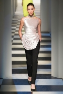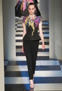 Основные элементы: вечерние платья с вышивкой, металлизированные ткани, узкие брюки, мех, атлас, бархат