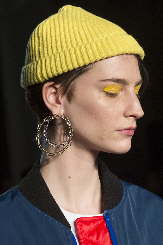 Прически и макияж: небрежные, будто растрепанные волосы; тени ярких цветов на веках некоторых моделей