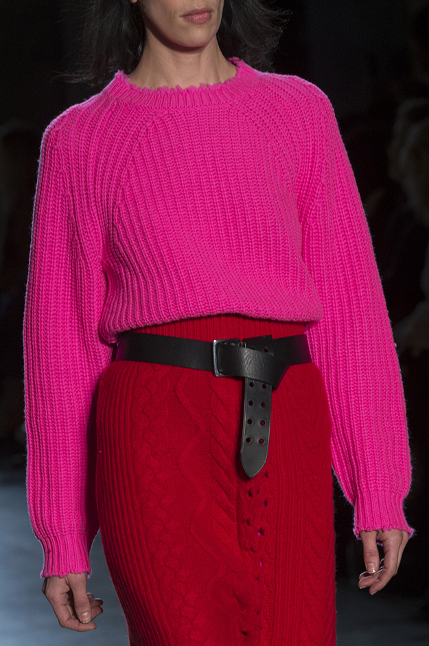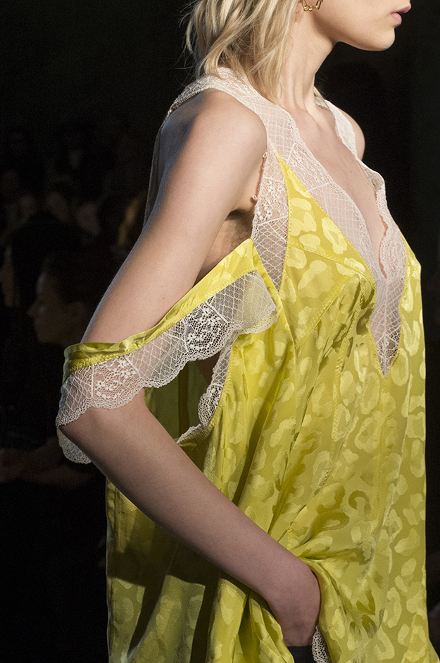 Кожаные брюки и шорты, стиль милитари, платья в бельевом стиле, прозрачные ткани, слои — знаковые для бренда элементы читались и в новой коллекции. Наряду с этим в коллекции появились элементы уличного стиля: завязанные ремни, повязанные вокруг шеи стеганые куртки, толстовки и свитера oversize с крупным лого бренда. Можно сказать, что Сесилия Бонстром во многом показала свой взгляд на хайпбистов, которые есть и в Париже, и в Нью-Йорке, и даже в Москве.