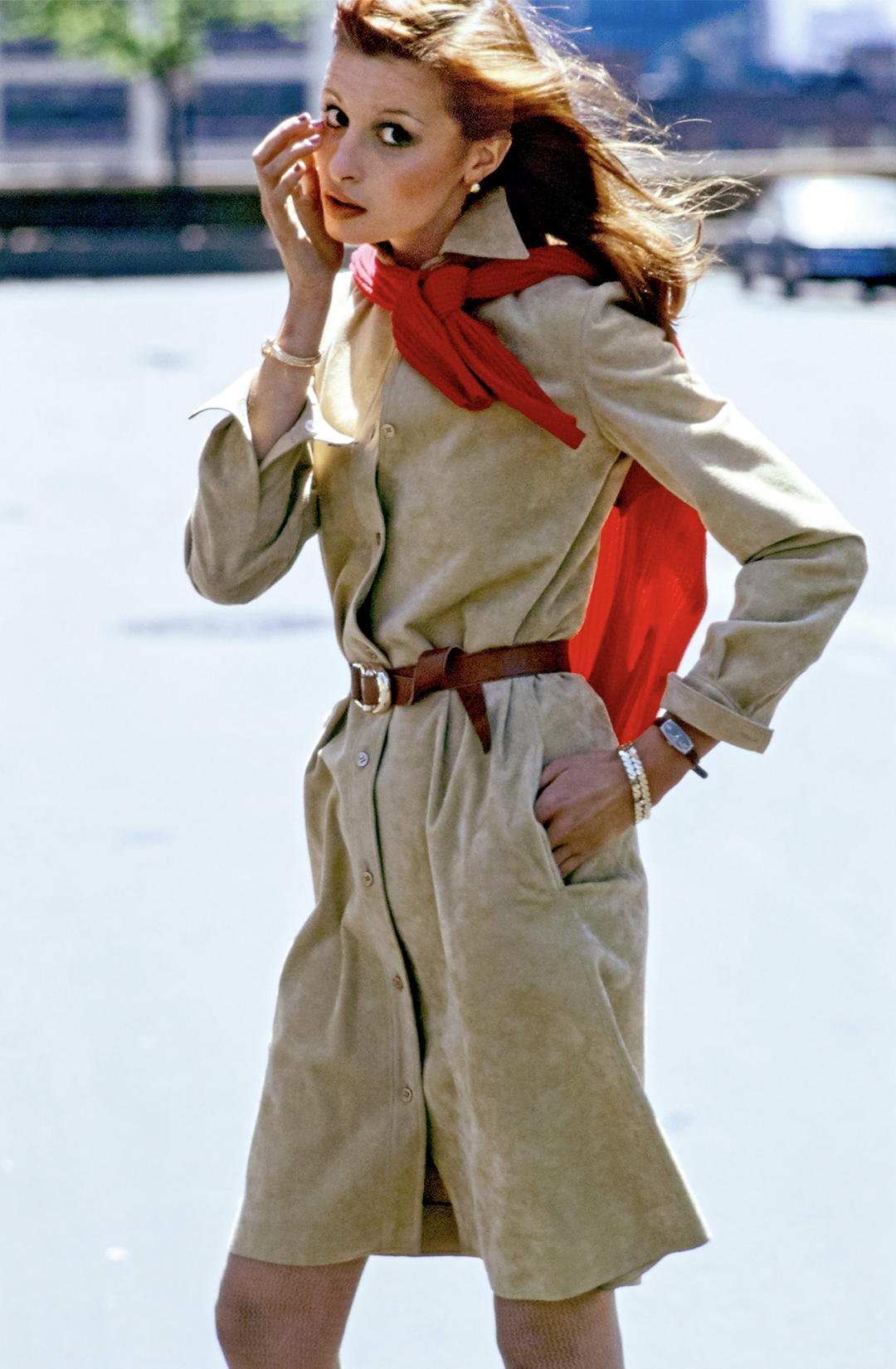 Холстон создавал гламурные образы для Бьянки Джаггер, Элизабет Тейлор и своей близкой подруги Лайзы Минелли, при этом был движим идеей придумать идеальное платье для будней. Именно такой вещью стало его платье из Ultrasuede® (искусственная замша, которую разработали в Японии в начале 1970-х). По легенде, он впервые увидел «ультразамшу» на дизайнере Иссее Мияки. В 1972 году Холстон сшил из этого материала платье-рубашку — одно из самых известных его вещей, а также символ десятилетия. Особенность дизайна была в том, что конструкция платья взята от мужской рубашки: характерный воротник, манжеты на двух пуговицах, прямой крой. Правда, ряд пуговиц начинался ниже обычного — от линии груди. Смягчить силуэт также помогал пояс. И да, платье можно было стирать в машинке.