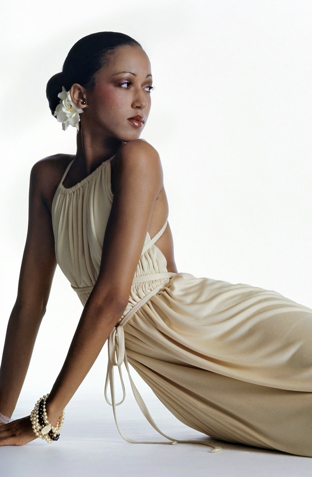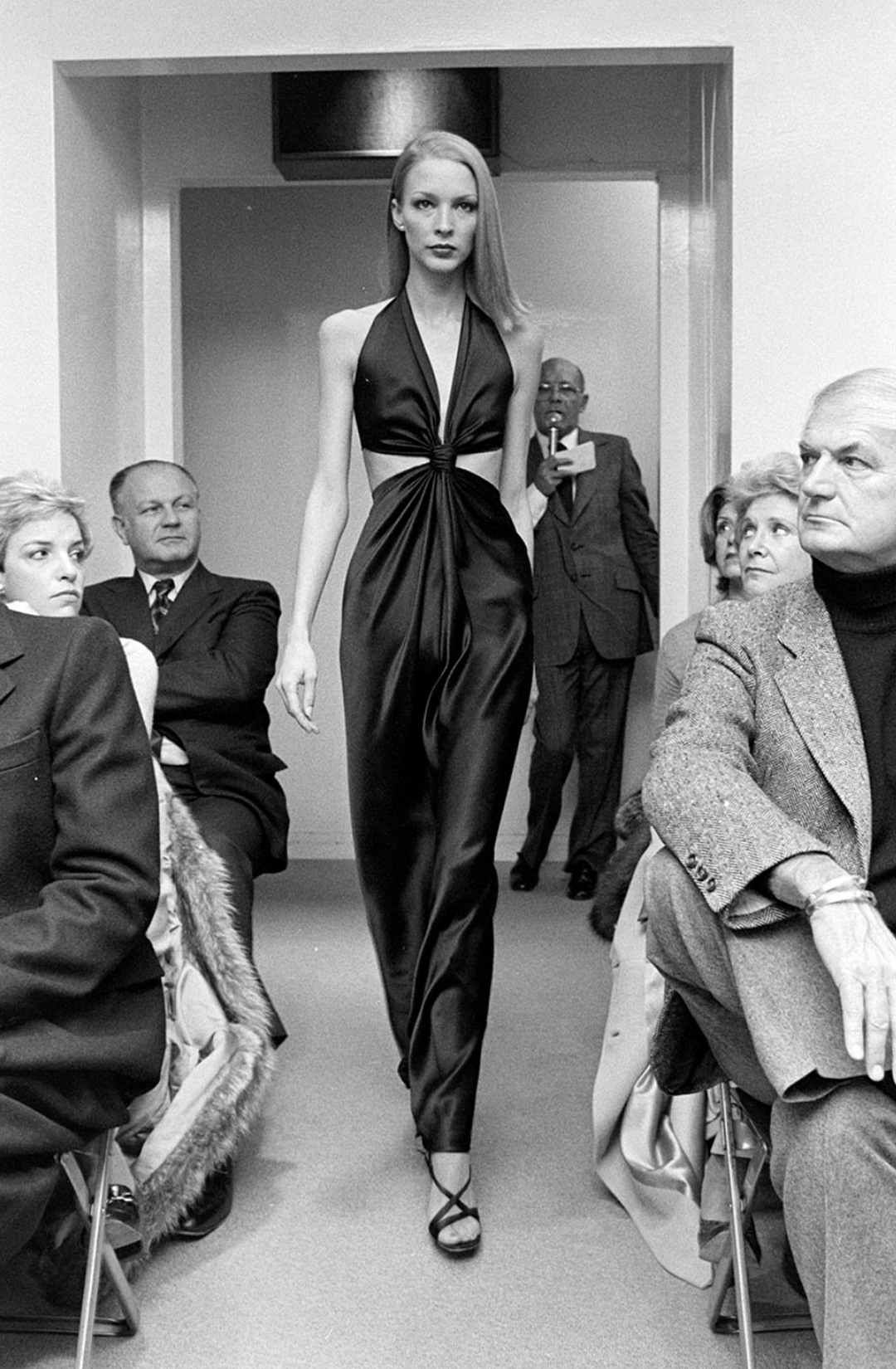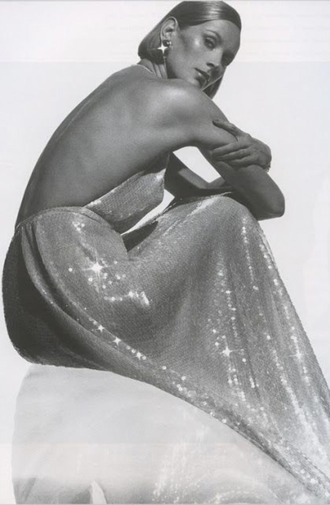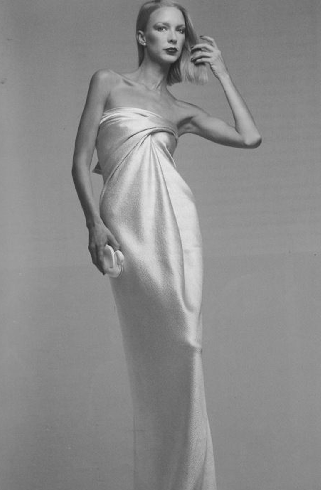 Вечерние платья Холстона были основаны на древнегреческой гиматии: открытая спина, глубокий вырез, складки. Но в руках дизайнера они смотрелись максимально чувственно. Главенствующие силуэты Halston — платья с совсем тонкими, почти невидимыми бретелями или с воротником-халтером, которые следовало носить без бюстгальтера. Именно такие вещи составили гардероб героини Мишель Пфайффер в «Лице со шрамом»: фильм вышел в 1982 году, сам Холстон не принимал в нем никакого участия, но художники по костюмам ориентировались именно на холстонский гламур 1970-х.