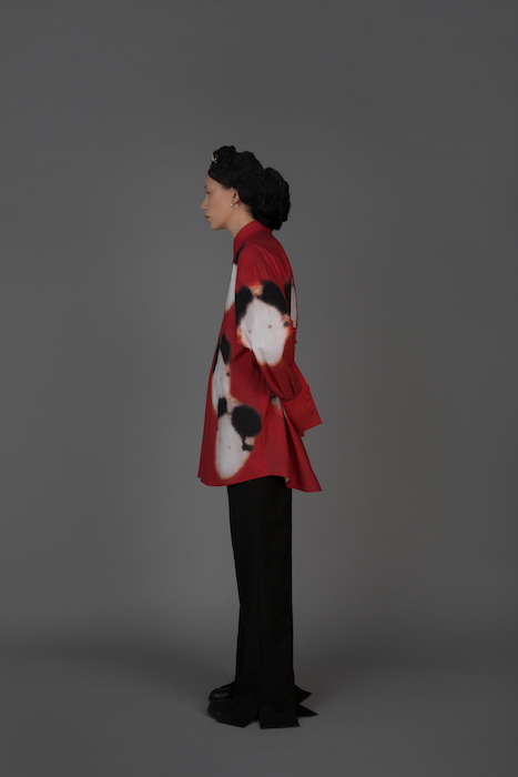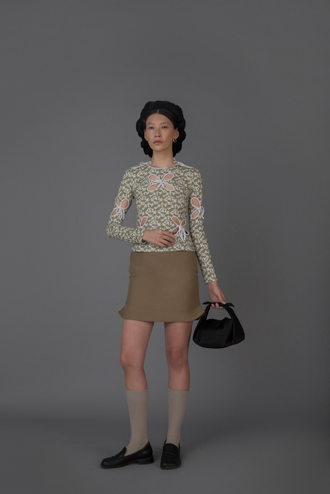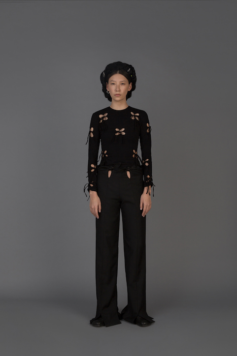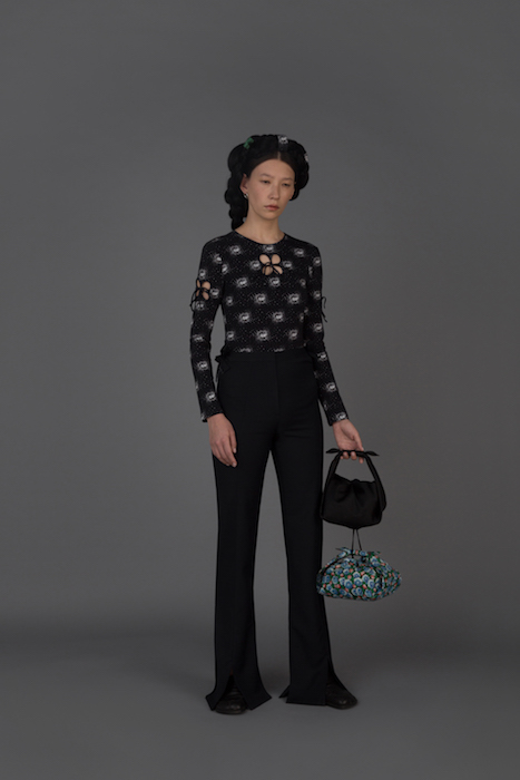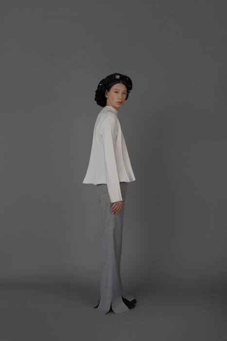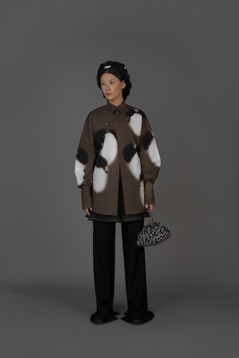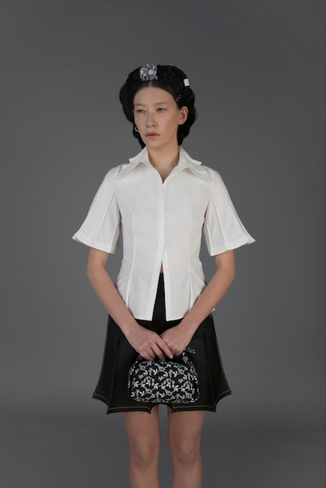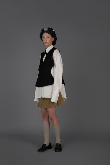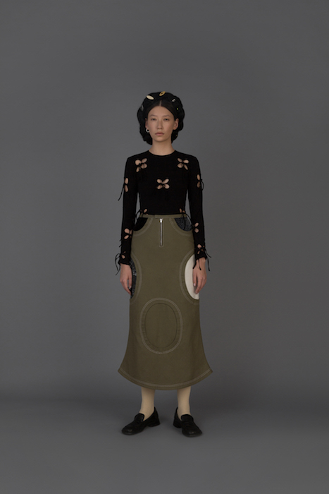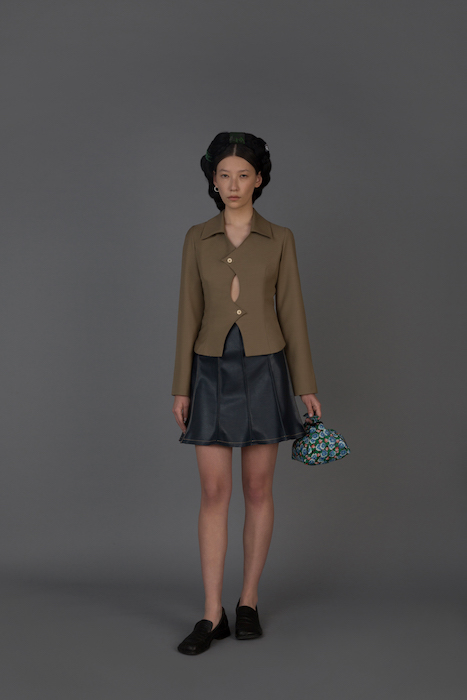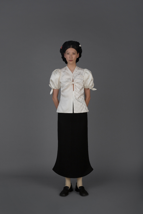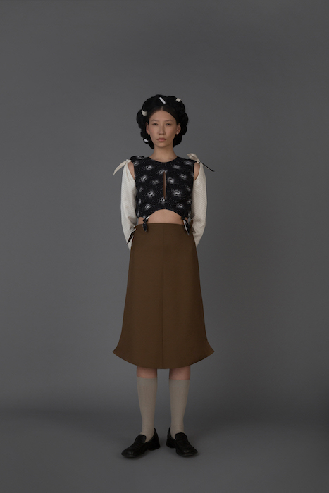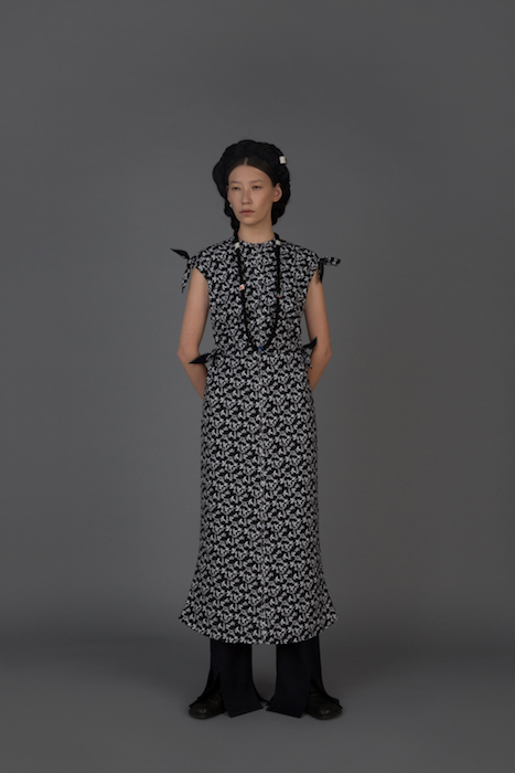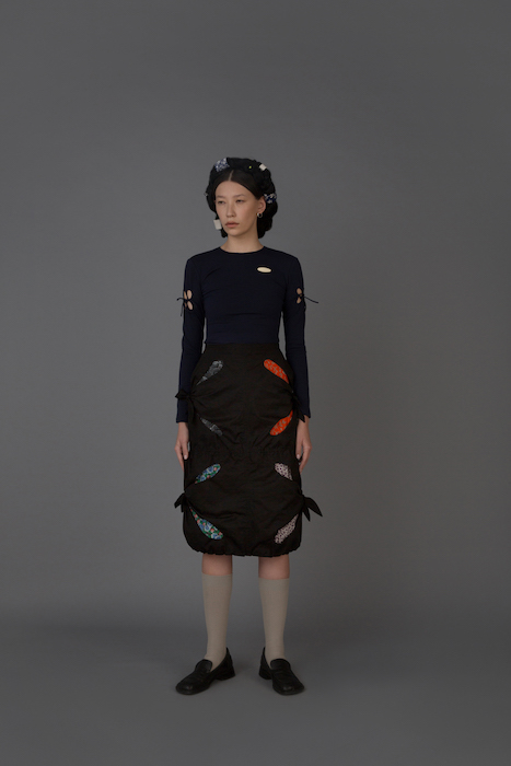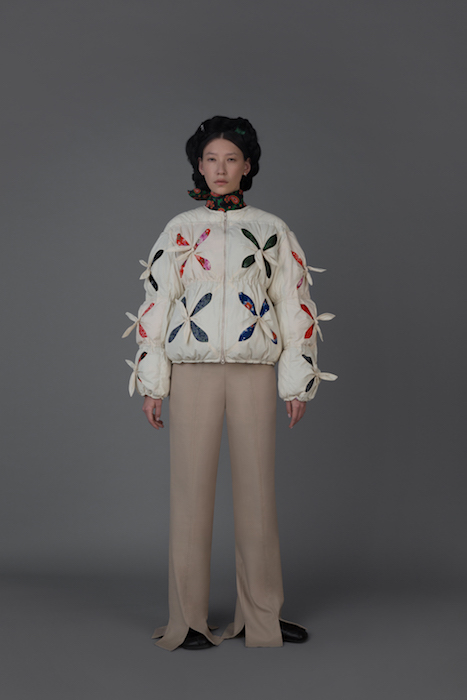В новой коллекции Женя Ким исследует культуру, в которой выросла: дизайнер — кореянка, а росла в Узбекистане. По словам Жени, вещи отражают ее художественный взгляд на то, как живущие в Узбекистане выходцы из Кореи могут по-своему выражать себя и придумывать собственный костюм. В лукбуке проскальзывают корейские прически, увиденные в фильмах, форма вещей вдохновлена корейской архитектурой, также использованы советские материалы. Винтажными тканями «набиты» пуховики и юбки — в результате вещи напоминают сложенные друг на друга тюки-тугуны, которые символизируют кочевой образ жизни. Также Женя работает с корейским жаккардовым шелком и атласом, из которого шьют национальный корейский костюм.