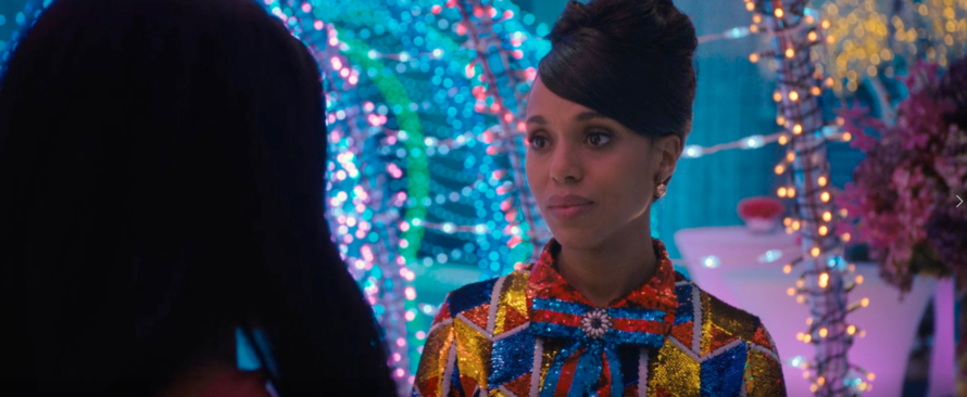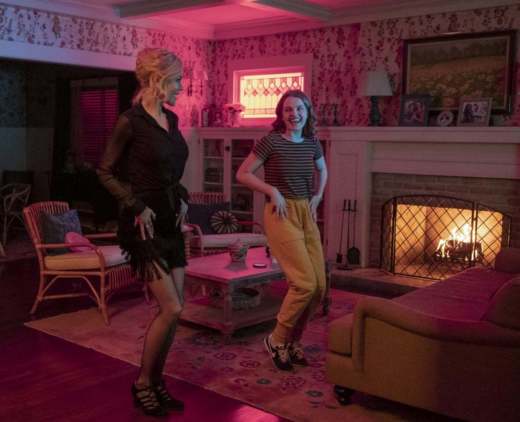 У Николь Кидман роль второстепенная, но гардероб героини не менее эффектный: есть бирюзовый жакет MaxMara, сумка Valentino, ботфорты с выделкой под крокодила в тон, бретонская кепка и коллекция ярких колготок. Ее мини-платья украшены то перьями, то мехом, а для ее запоминающегося танцевального номера сшили юбку с ярусами бахромы. Обувь ко всем танцевальным сценам «Выпускного» брали аутентичную — туфли бренда LaDuca, основанного бродвейским артистом.