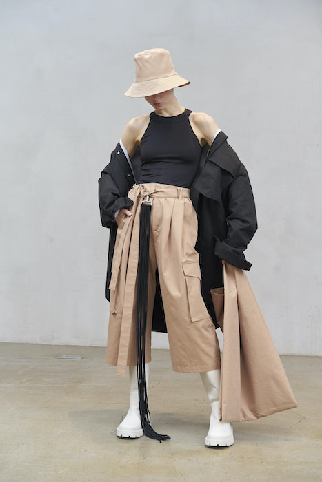 Брюки-карго, большие куртки с множеством карманов, панамы — не исключено, что дизайнеры Ushatava искали вдохновение для новой коллекции в магазине «Все для рыбалки». Основным декоративным элементом коллекции стала сетка, которая также напоминает о рыболовных снастях. Поверх плащей накидывают платки-сети, с брюками носят платье, сплетенное из веревок. Все эти вещи напоминают о летней коллекции Nanushka — надеемся, что российская марка не пыталась никого копировать, а просто следовала сезонным трендам.