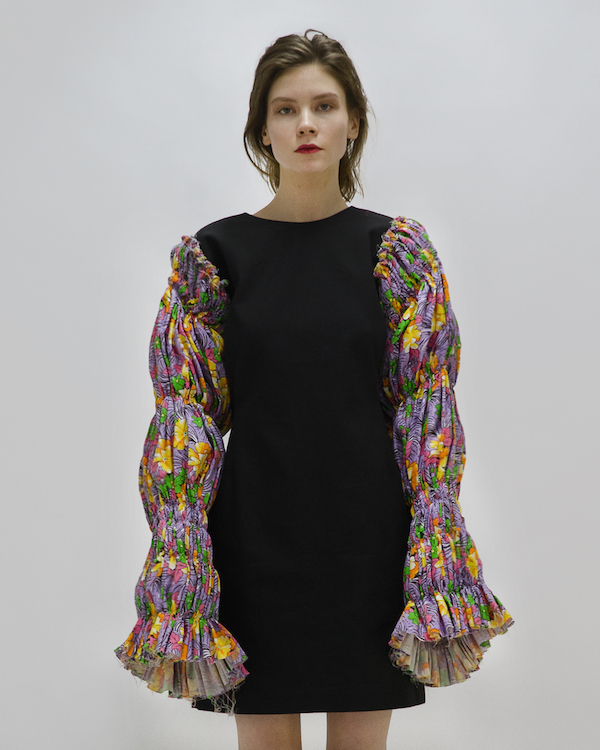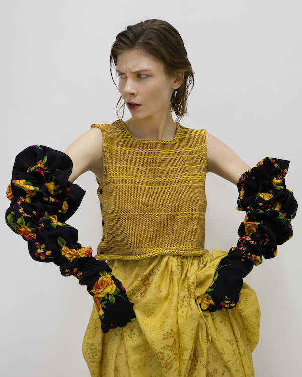 и не искали старые выкройки, — рассказывает Аня. — Основой коллекции стало маленькое черное платье-корсет. На него надеваются все позиции: нарядные юбки, платья на одно плечо». Из хлопка жизнерадостных расцветок 1950–1970-х годов сшили перчатки, объемные болеро — по задумке, все они будут круто смотреться
