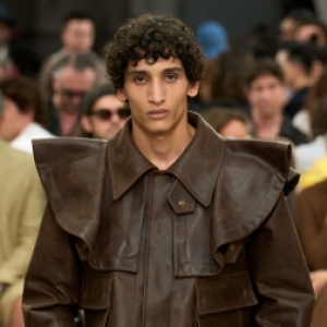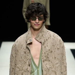 В мужской весенне-летней коллекции 2025 Джорджо Армани остается верен себе, а еще проводит едва заметную грань между предыдущим шоу его другой линии — Emporio Armani. От последней на текущем показе были очень расслабленные силуэты, рубашки с эффектными вырезами и почти что шаровары, заправленные в грубые сапоги.