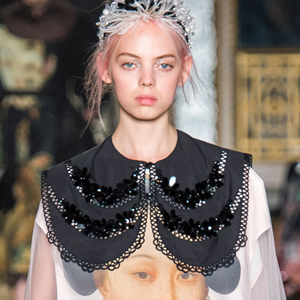 В коллекциях Джозефа Фонта легко считываются цитаты из мира искусства и элементы природы. В новом сезоне дизайнер обратился к работам художника-стеклодува Фульвио Бьянкони, известного миру вазой fazzoletto, и к нежному цветку глицинии, который по своей форме и цвету вполне себе напоминает арт-объект. Так у Фонта получились платья весенних оттенков с разрезами, которые цепляют взгляд, блузы с плечами в виде кистей лиловых цветков и много полупрозрачных, будто стекляных, комплектов.