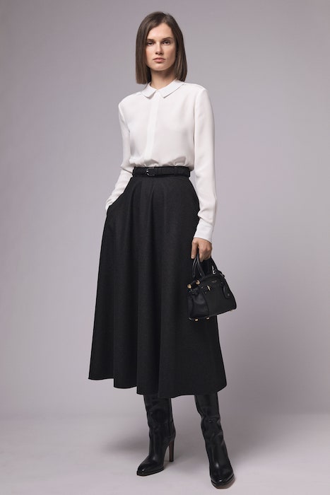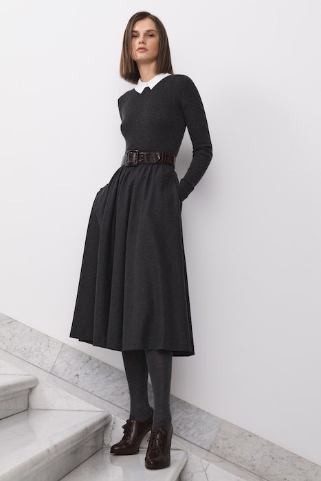 Ральф Лорен презентует новые коллекции не за полгода, как принято, а в начале сезона в формате see now buy now. И хотя работу над осенне-зимней коллекцией дизайнер начал задолго до потрясений 2020 года, вещи выглядят так, словно пандемия и ее последствия наложили свой отпечаток. Свободные миди-юбки, уютные пальто и кардиганы, большие пиджаки, которые можно носить поверх свитшотов, — идеальная одежда для неспокойного времени, когда не хочется ничего усложнять. Даже вечерние платья выглядят так, будто готовы стать нашим укрытием: есть модели из плотного бархата, с высоким воротником и закрытыми плечами.