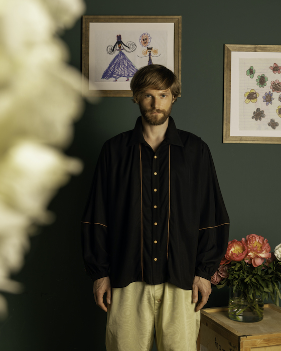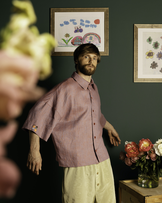 Новая коллекция Никиты Калмыкова состоит из 25 рубашек — ключевого предмета его марки Odor. На некоторые из них дизайнер перенес собственные детские рисунки фломастером, которые теперь вышиты контурной гладью. На других можно увидеть маленьких красочных человечков — это традиционная мексиканская вышивка, которая создана на основе текстиля, найденного в Мексике пару лет назад. Еще рубашки Odor декорируются кружевной тесьмой, цветным кантом, винтажными пуговицами и кружевом. Есть варианты с отстегивающимися полотнами, благодаря которым можно менять длину рубашки. Как и прежде, Никита работает с разными видами хлопка. В коллекции к ним добавляются тенсел и модал, а также хлопковый трикотаж — из последнего сделаны футболки и поло.