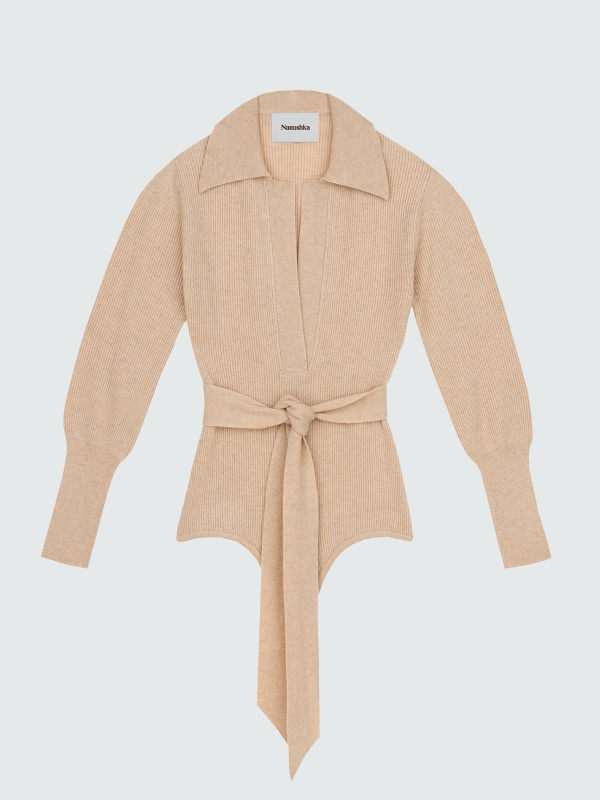 Шерсть и хлопок, которые использует Nanushka, отвечают международным стандартам органического текстиля (GOTS — The Global Organic Textile Standard). В первую очередь, производство органических тканей направлено на устойчивое развитие фермерских хозяйств: имеется в виду отказ от пестицидов и искусственных удобрений, которые могут быть вредоносны для почвы. Стандарт GOTS также защищает свободы животных: они должны находится в условиях, максимально приближенных к естественной среде, не испытывать голод и страх. Из шерсти и хлопка по стандарту GOTS в осенней коллекции Nanushka сделаны трикотажные миди-платья, свитеры на одно плечо и джинсы.
