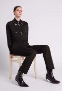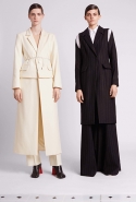 Основные элементы: прямые джинсы, классические пиджаки, строгие брюки, дубленки, оверсайз-свитера крупной вязки, оверсайз-пуховики