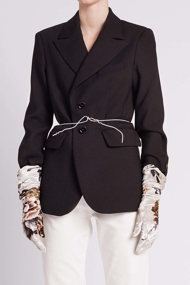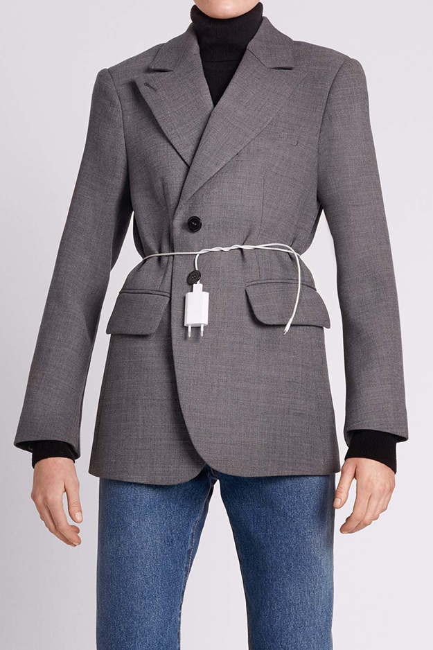 Новая коллекция, с одной стороны, не выходит за заданные маркой рамки: Гальяно представил прямые джинсы — классические синие или колор-блок, базовые пиджаки, шерстяные пальто благородных цветов, оверсайз-дубленки и толстовки в духе нулевых. С другой стороны, эстетическим центром осенне-зимней коллекции стал не столько дизайн одежды, сколько неожиданный аксессуар — сломанные зарядки для гаджетов и проводники, использованные в качестве пояса. Это решение — будь оно сознательной отсылкой или нет — напоминает о повороте в современной эстетике, когда мобильные технологии и интернет выходят на первый план.